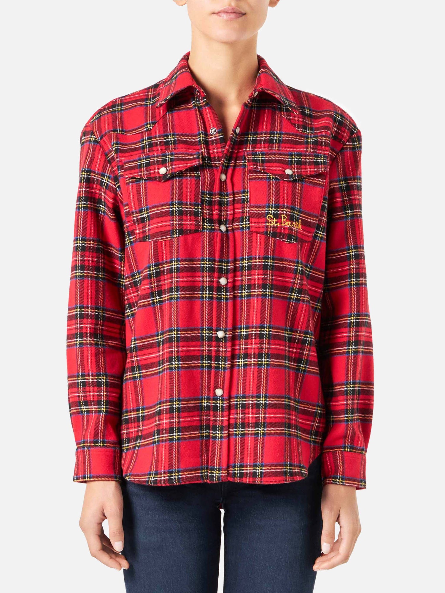 • Meredith linen classic shirt with light blue striped print - MC2 Saint Barth