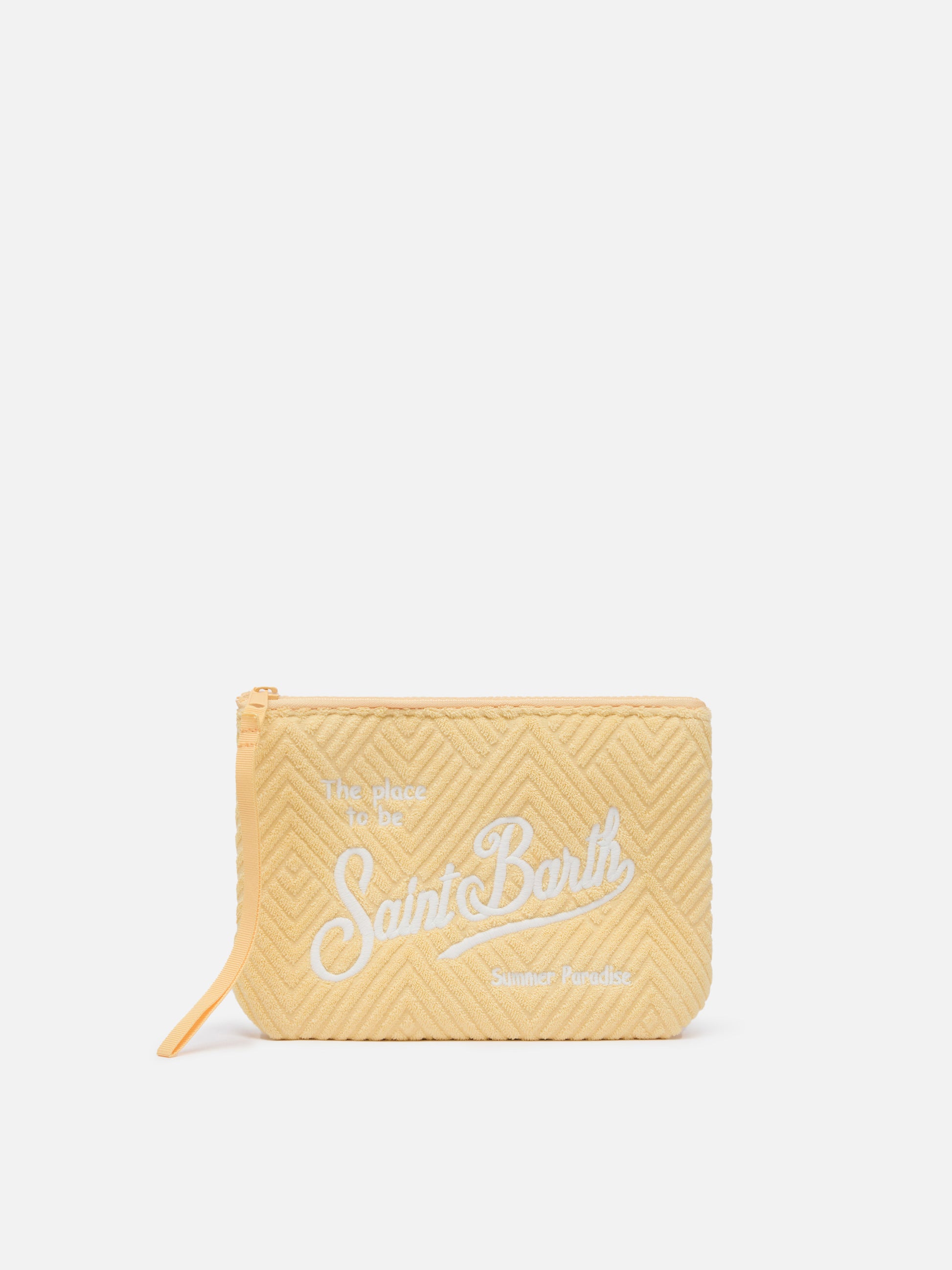 Aline Pochette aus gelb kariertem, geprägtem Frottee