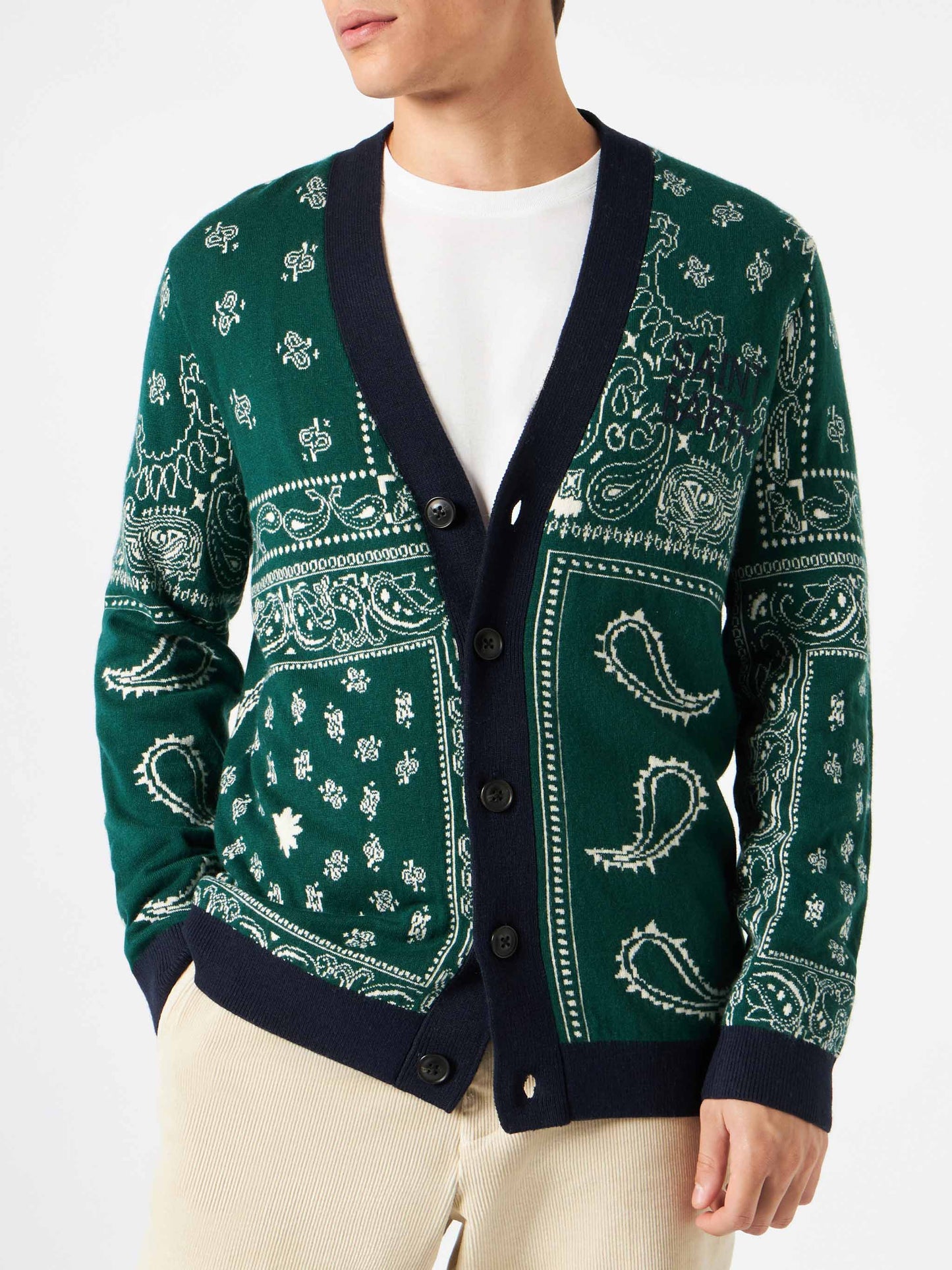 Dunkelgrüner Bandanna-Strick-Cardigan mit Saint-Barth-Stickerei