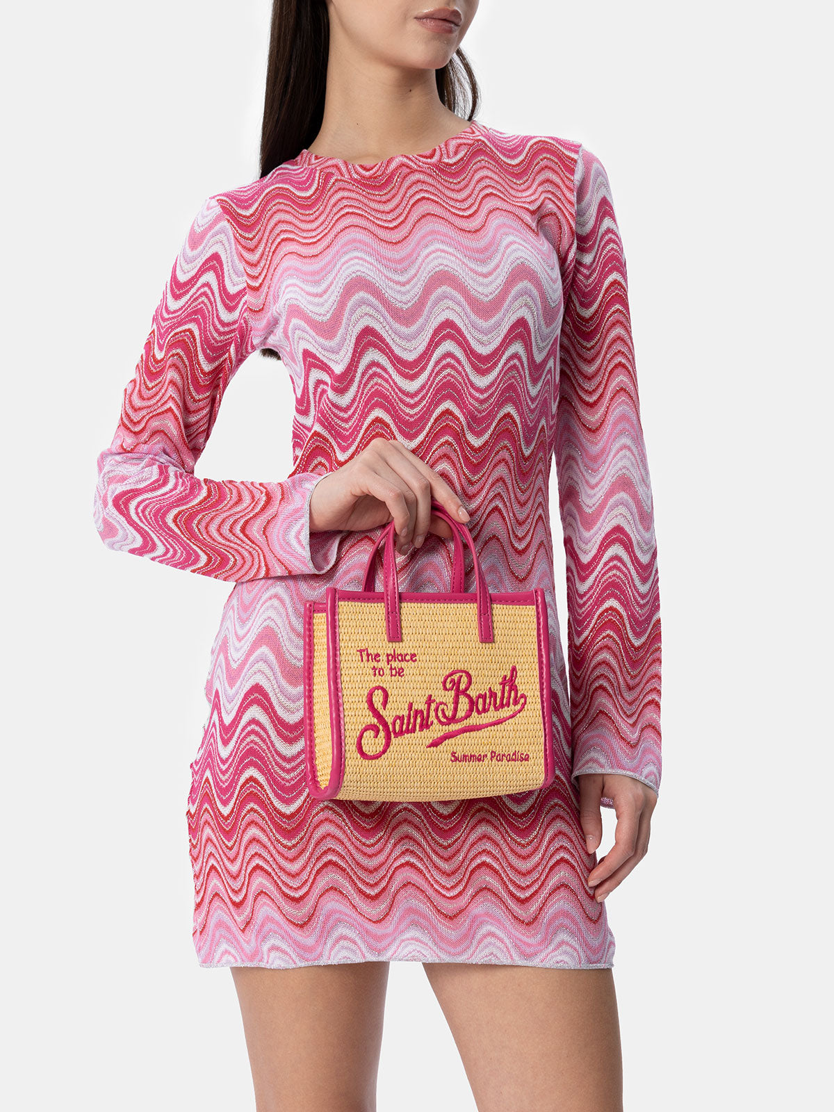 Beigefarbene Mini-Vivian-Strohhandtasche
