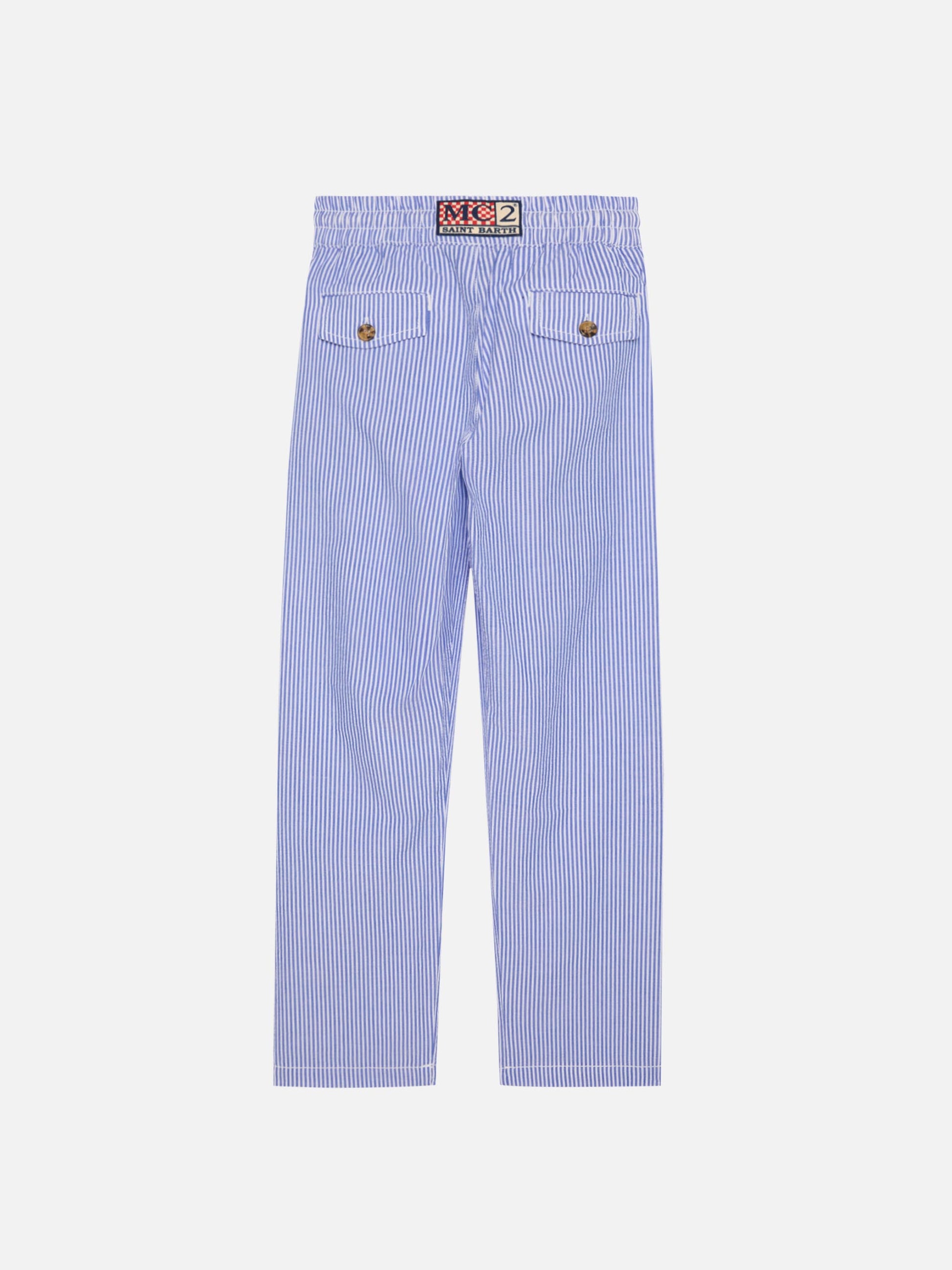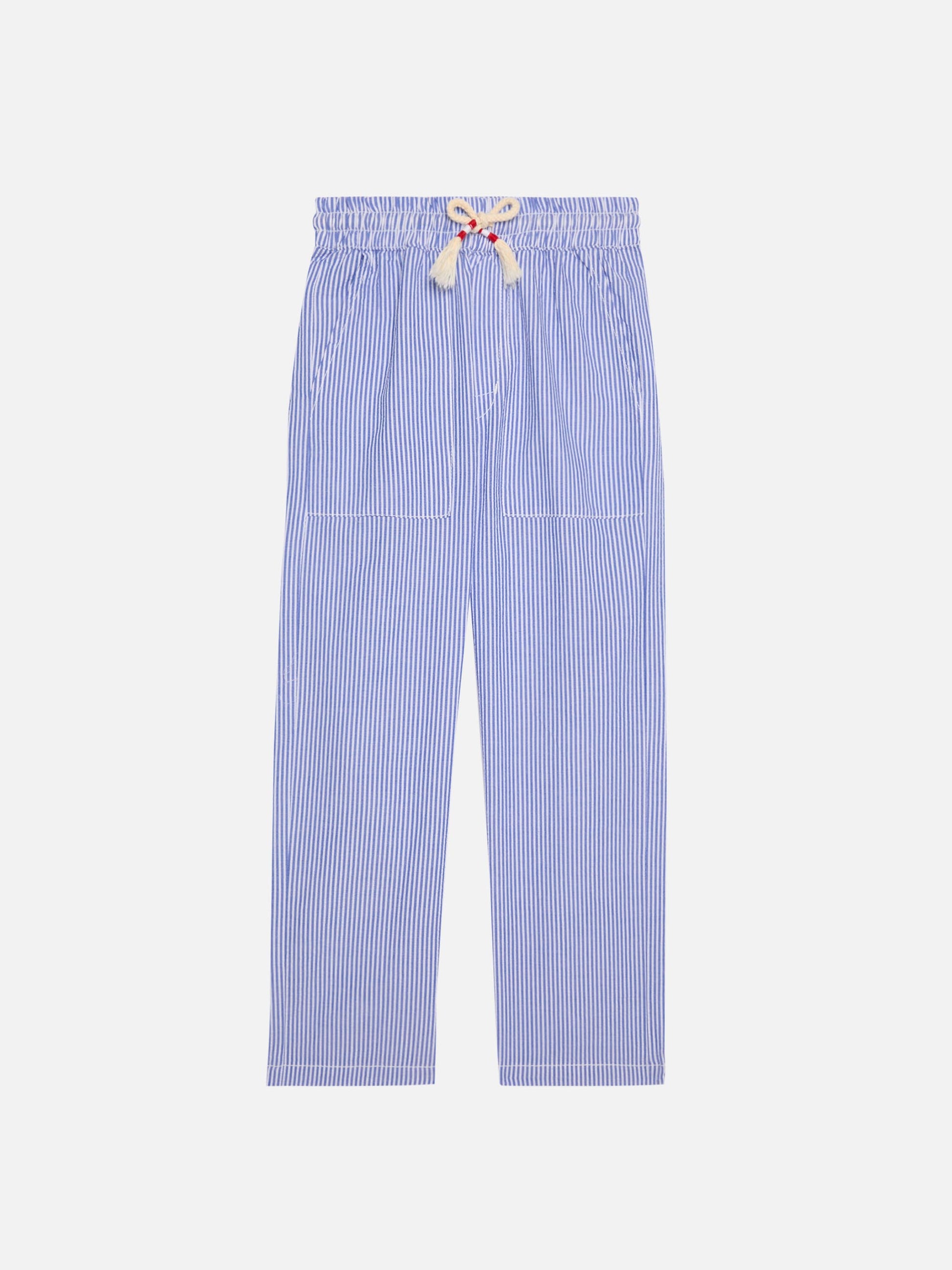Calais Jr. – Gestreifte Seersucker-Hose mit Kordelzug