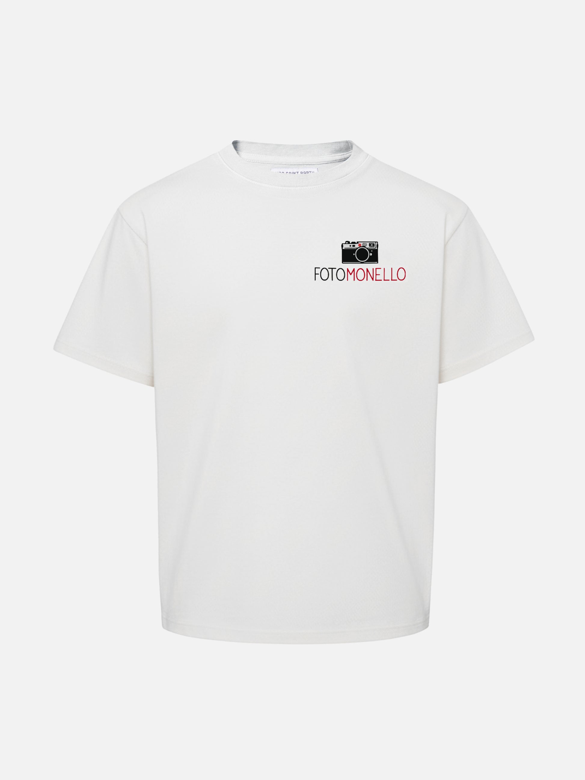 Weißes Cameron-Baumwoll-T-Shirt mit Fotomonello-Stickerei