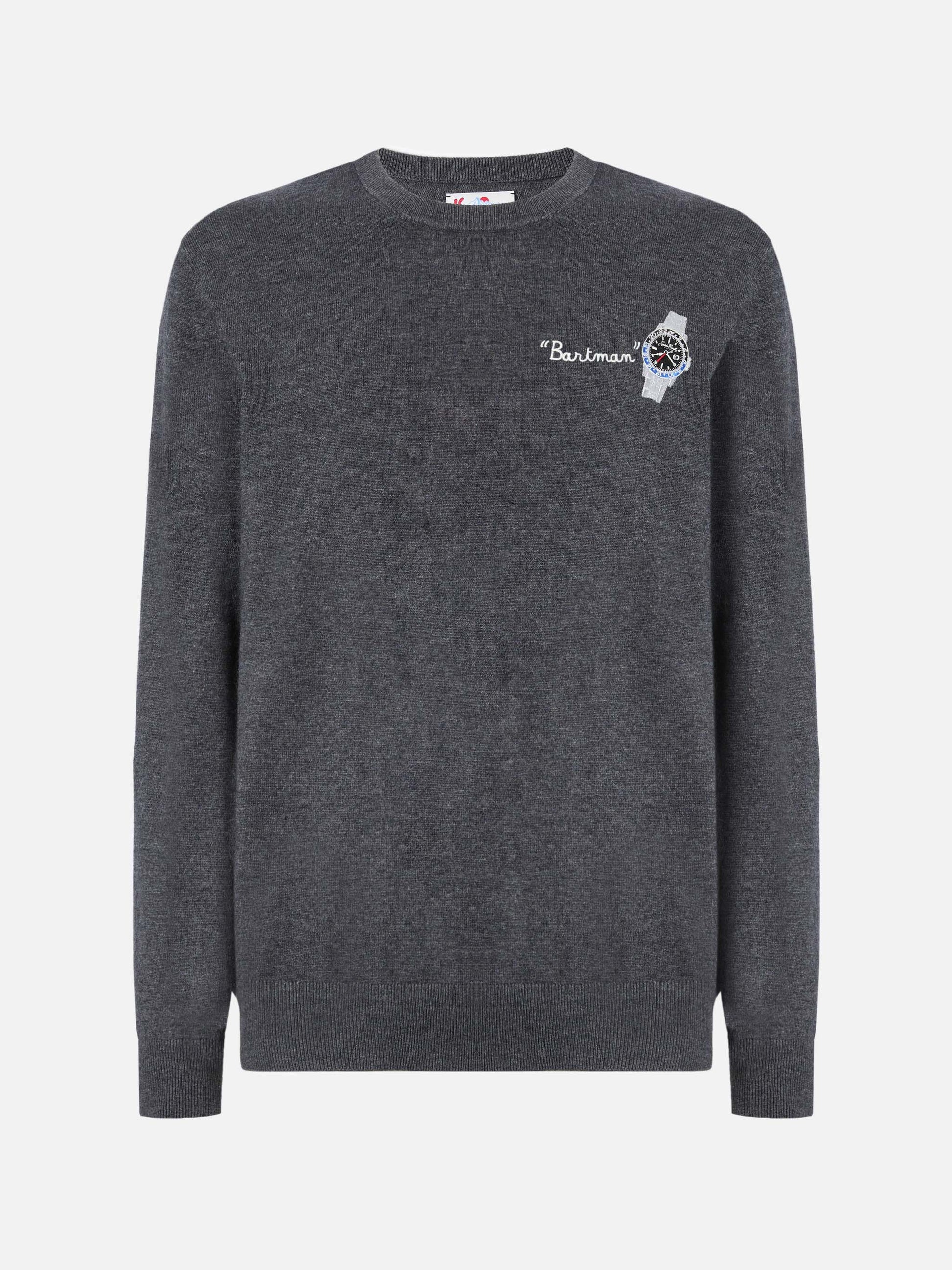 Rundhalspullover Heron Light mit Bartman-Stickerei