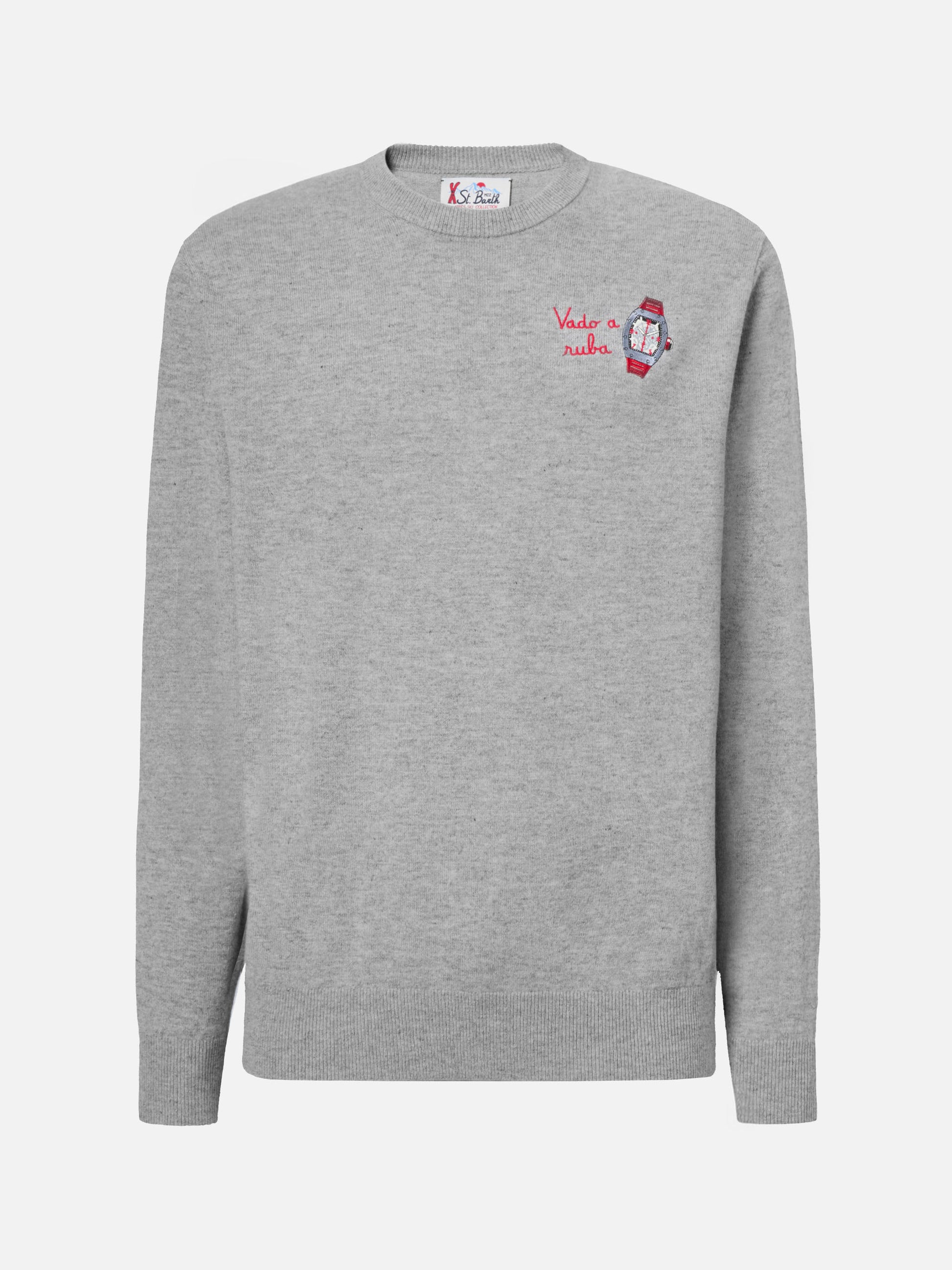 Crewneck sweater Heron Light with Vado a ruba embroidery