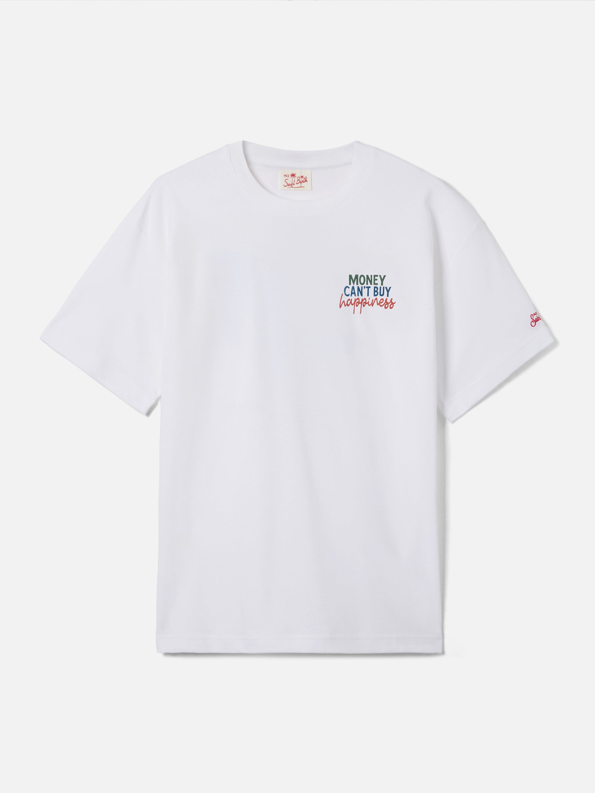 https://it.mc2saintbarth.com/de/products/delmar-t-shirt-with-money-can-t-buy-happiness-print-and-maxi-graphic-on-the-back10775856677210Delmar t-shirt with Money Can’t Buy Happiness print and maxi graphic on the back89,00https:files/UID_DLR000101525L-MAN-T-SHIRT-WHITE-MC2-MC2_5.jpghttps:files/UID_DLR000101525L-MAN-T-SHIRT-WHITE-MC2-MC2_5.jpgEURInStockT-SHIRT650948215130Alle Produkte – nur von Man649134276954AVADA - Bestseller672324452698New In - Man288164774072T-Shirts für Herren654690484570UpSelling_Man_T-ShirtsThe Delmar t-shirt is crafted from pure cotton, designed to provide comfort and a natural feel against the skin. The white solid-color design highlights the essential construction of the garment. The style features a Money Can’t Buy Happiness print on the chest, while the back is enriched with a coordinated large illustrated print depicting a summer scene with palm trees, a seaside villa and a boat, completed by the same lettering. The garment is finished with a crew neck, short sleeves and a straight silhouette with a relaxed fit.