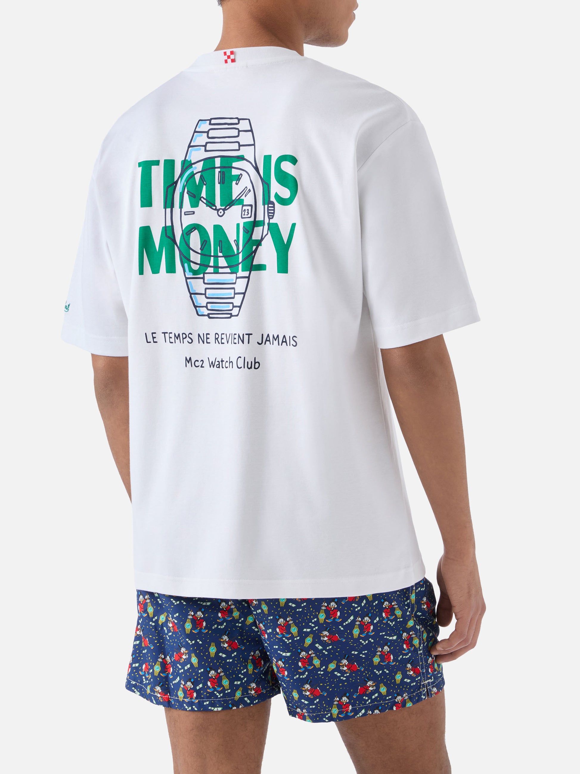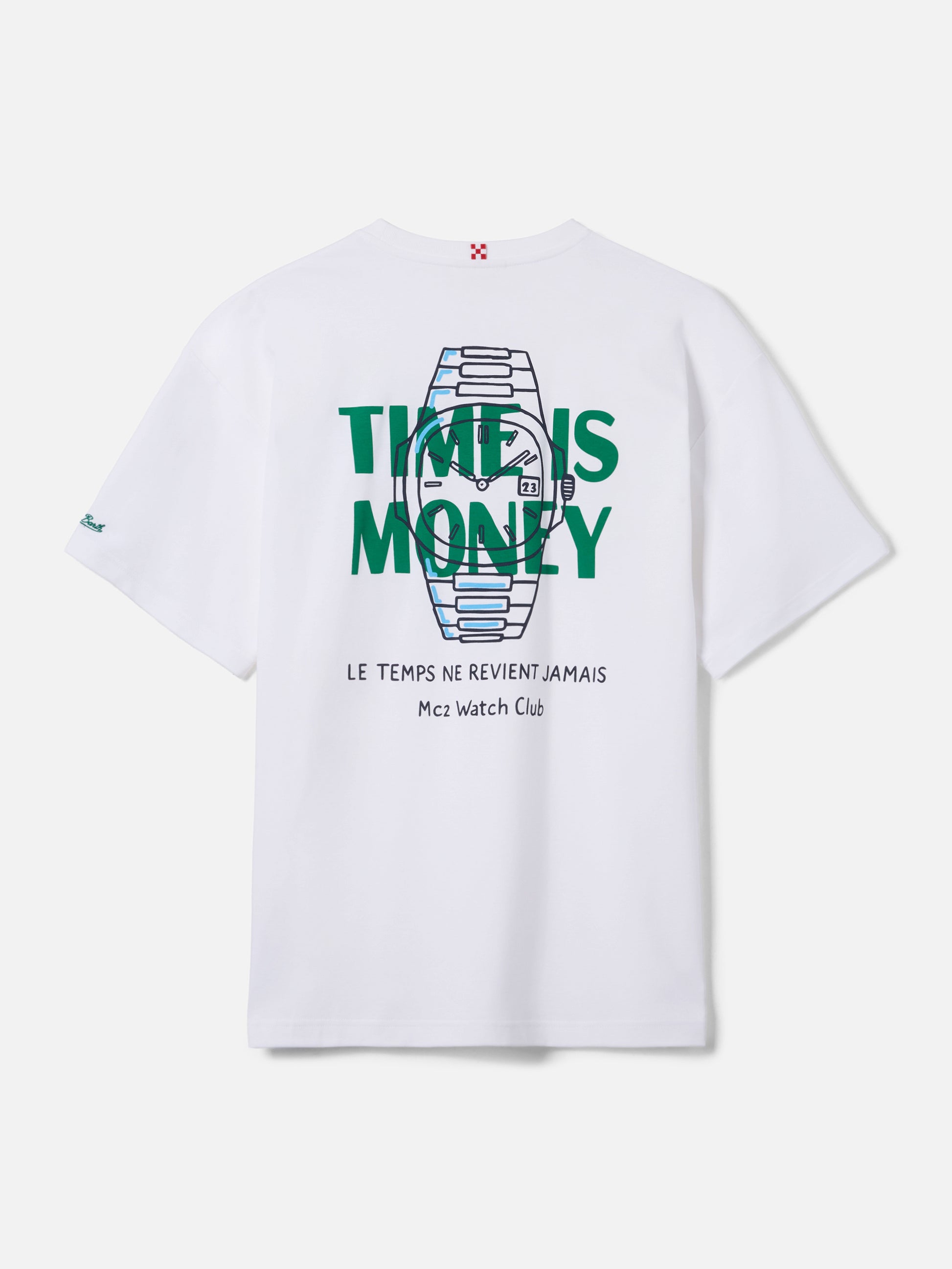 https://it.mc2saintbarth.com/de/products/delmar-t-shirt-with-time-is-money-print-and-maxi-graphic-on-the-back10775856742746Delmar t-shirt with Time Is Money print and maxi graphic on the back89,00https:files/UID_DLR000101605L-MAN-T-SHIRT-WHITE-MC2-MC2_5.jpghttps:files/UID_DLR000101605L-MAN-T-SHIRT-WHITE-MC2-MC2_5.jpgEURInStockT-SHIRT650948215130Alle Produkte – nur von Man649134276954AVADA - Bestseller647472087386Bedruckte T-Shirts288164774072T-Shirts für Herren621710016858Uhren aus Leidenschaft654690484570UpSelling_Man_T-ShirtsThe Delmar t-shirt is crafted from pure cotton, designed to provide comfort and a natural feel against the skin. The white solid-color design highlights the essential construction of the garment. The style features a Time Is Money in St. Barth print on the chest, while the back is enriched with a large graphic print featuring a watch and the Time Is Money lettering, completed by the phrases Le temps ne revient jamais and MC2 Watch Club. The garment is finished with a crew neck, short sleeves and a straight silhouette with a relaxed fit.