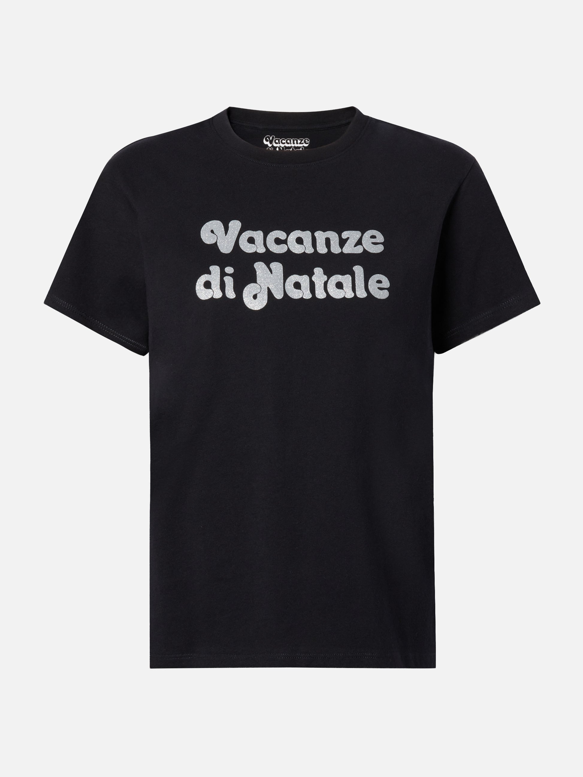 Emilie cotton T-shirt in black with Vacanze di Natale glitter print | VACANZE DI NATALE SPECIAL EDITION