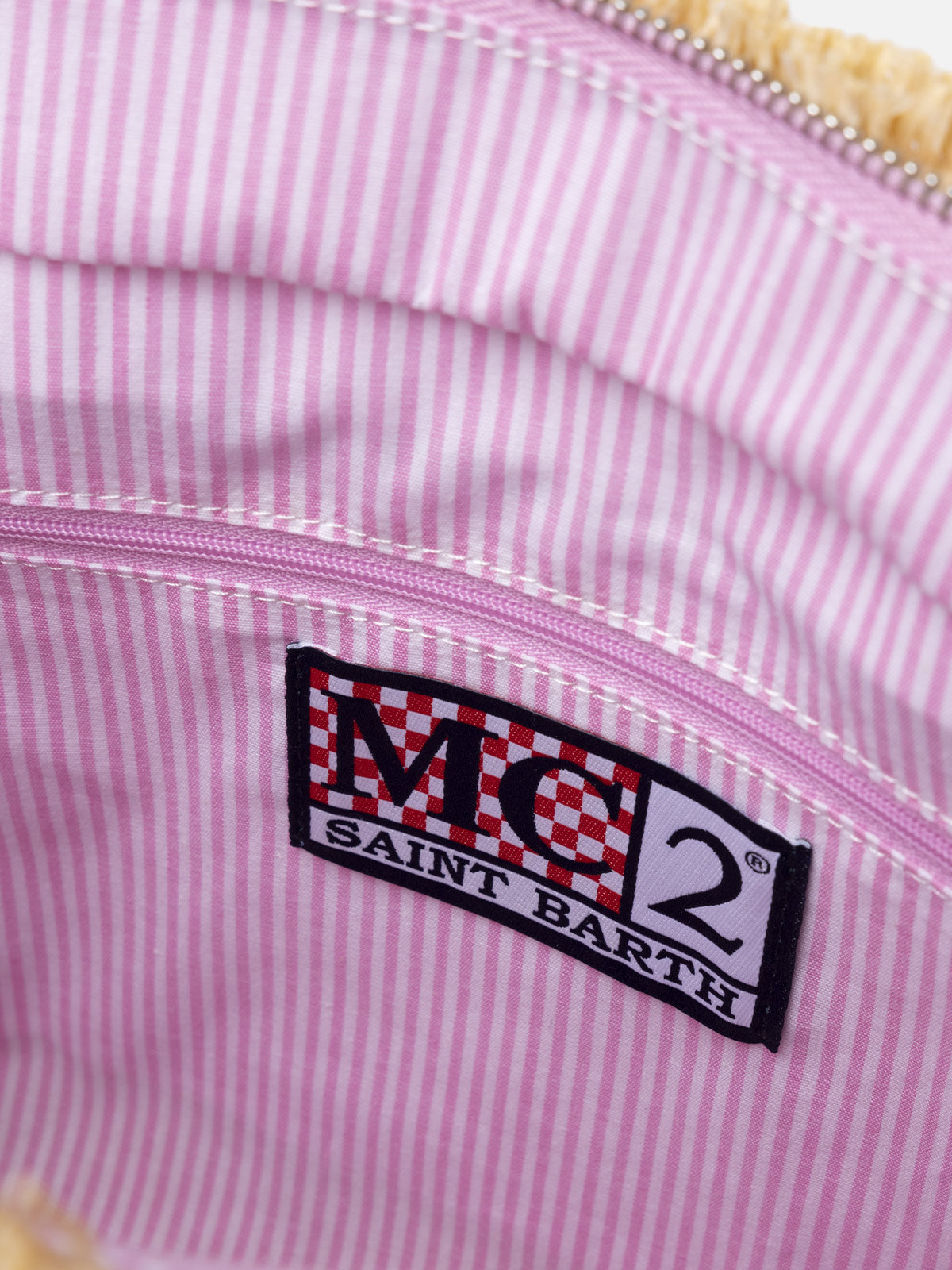 Fuchsia gestreifte Colette Straw-Handtasche mit Stickerei