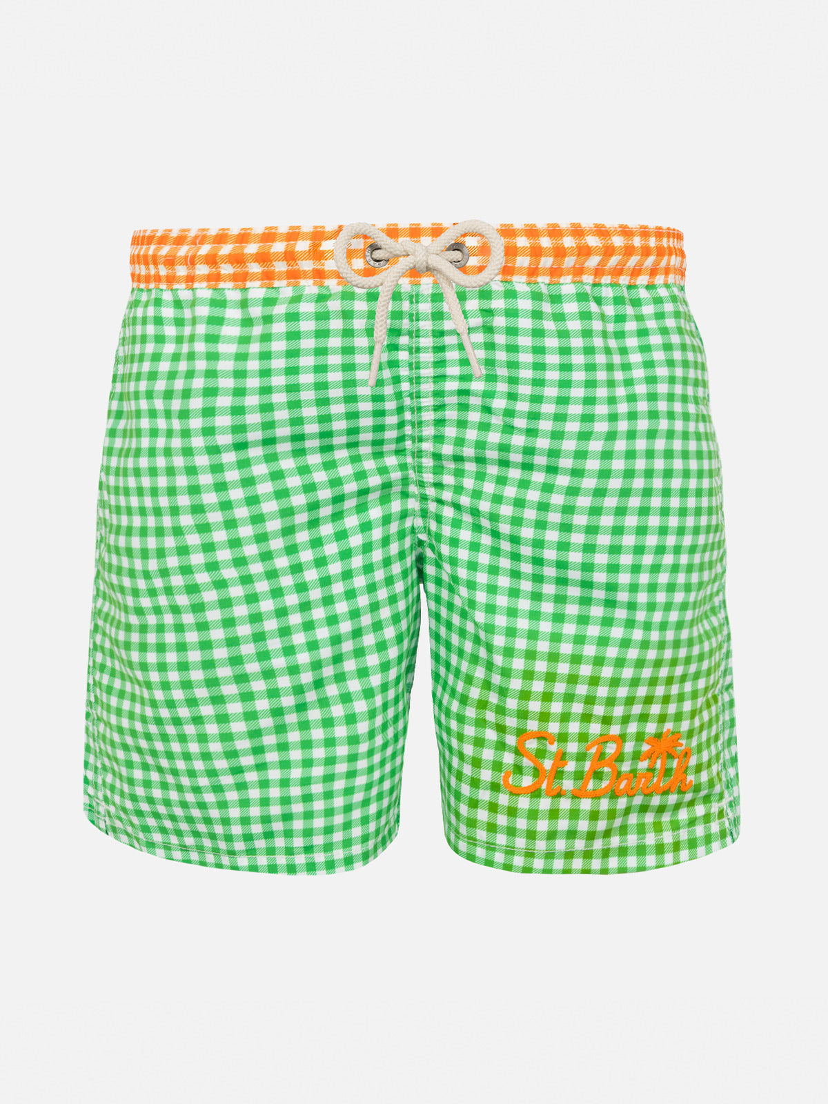 Grüne Badeshorts für Jungen mit Gingham-Karomuster und Stickerei