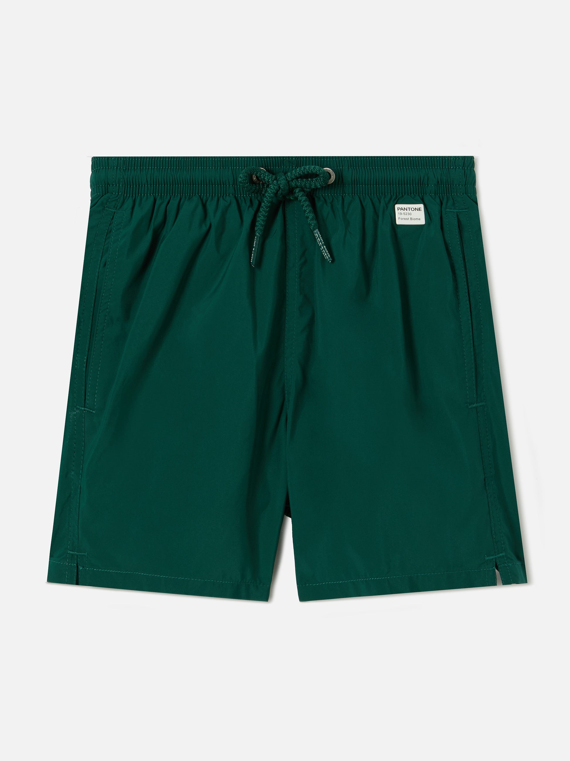 Jean Lighting Pantone boys swim shorts Pantone British Green Ultralight, breathable and quick drying fabric Elasticated waistband with adjustable drawstring Branded metal eyelets Two reinforced side pockets Back patch pocket with magnetic closure Rubberized puller Reinforced side slits Back waistband logo label Elasticated antibacterial inner mesh Pantone plaque with color code Presented in the Pantone piggy bank box Nickel free metal details Regular fit. Please keep this in mind when selecting your size.