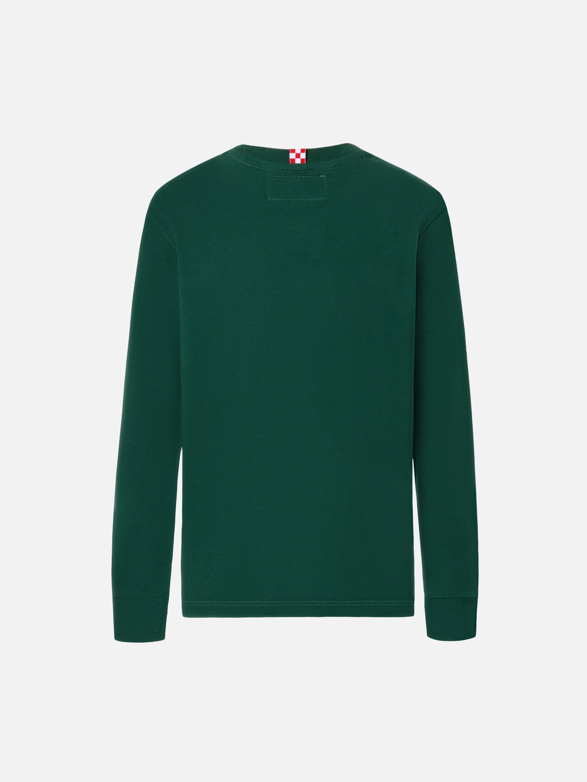 Luton long-sleeve cotton T-shirt in green with Me ne vado dai nonni embroidery