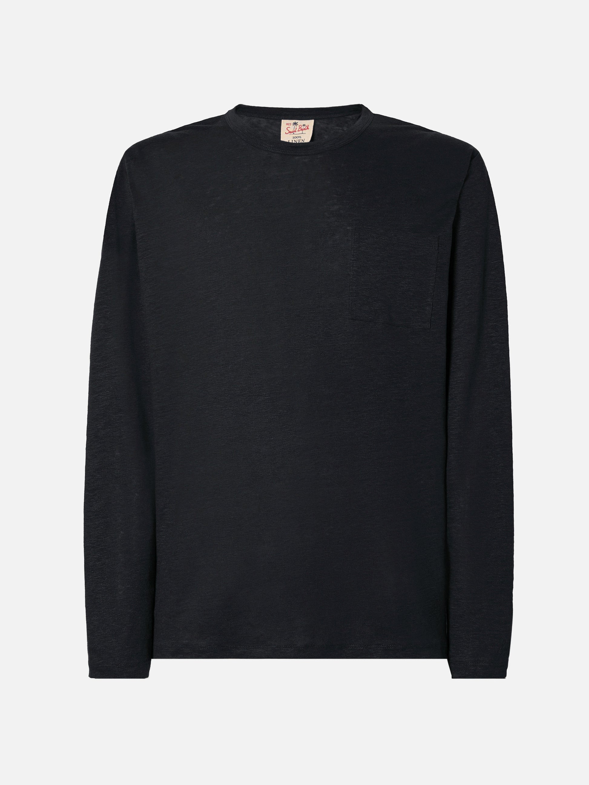Schwarzes Herren-T-Shirt aus Leinenjersey Ecstasea mit Tasche