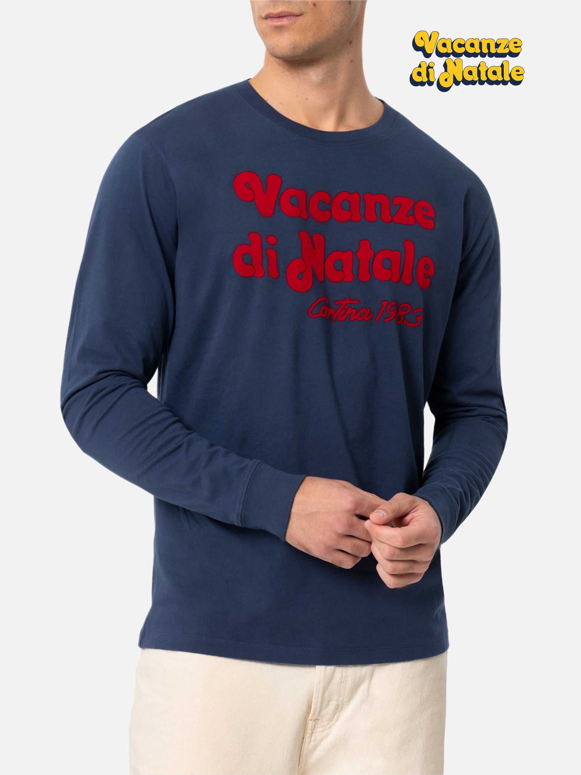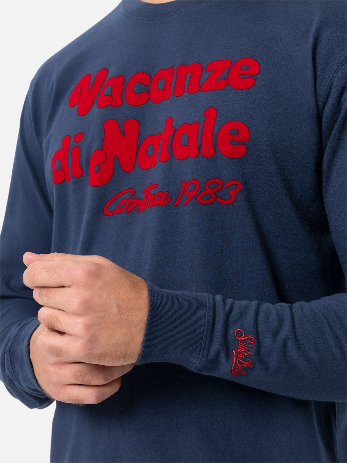 Blaues Herren-T-Shirt „Luton“ mit „Vacanze di Natale“-Filmlogo-Aufdruck | VACANZE DI NATALE SONDERAUSGABE