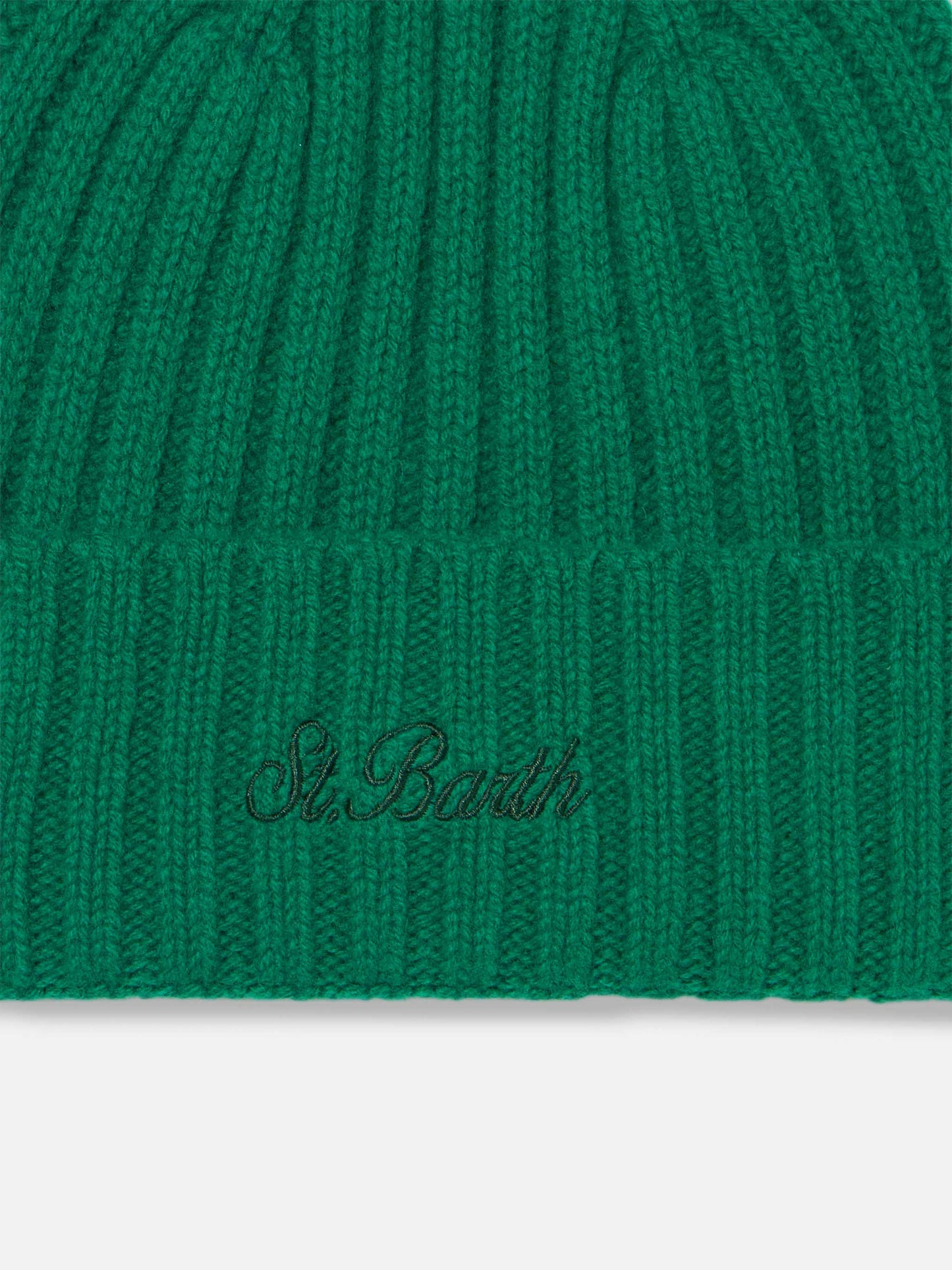 Grüne Herrenmütze aus Kaschmirmischung Wengen mit St. Barth-Stickerei