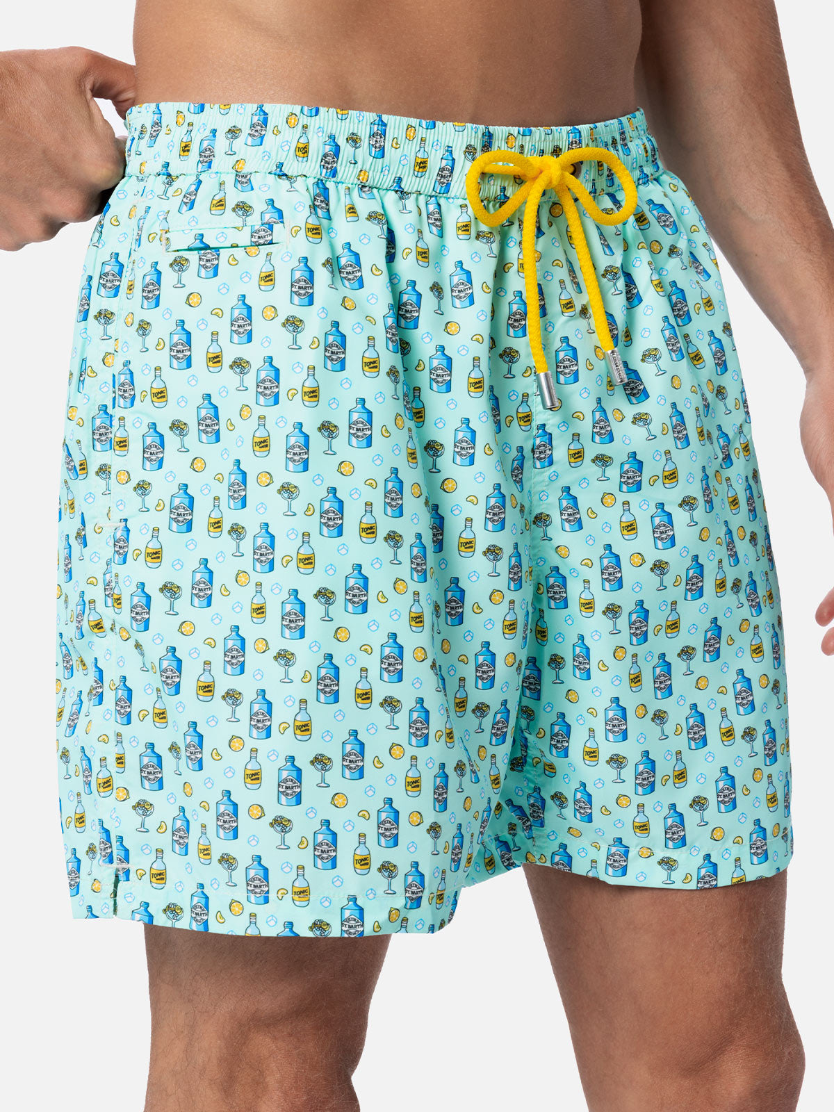 Herren-Badeshorts aus leichtem Stoff Lighting Micro Fantasy mit Gin-Tonic-Aufdruck