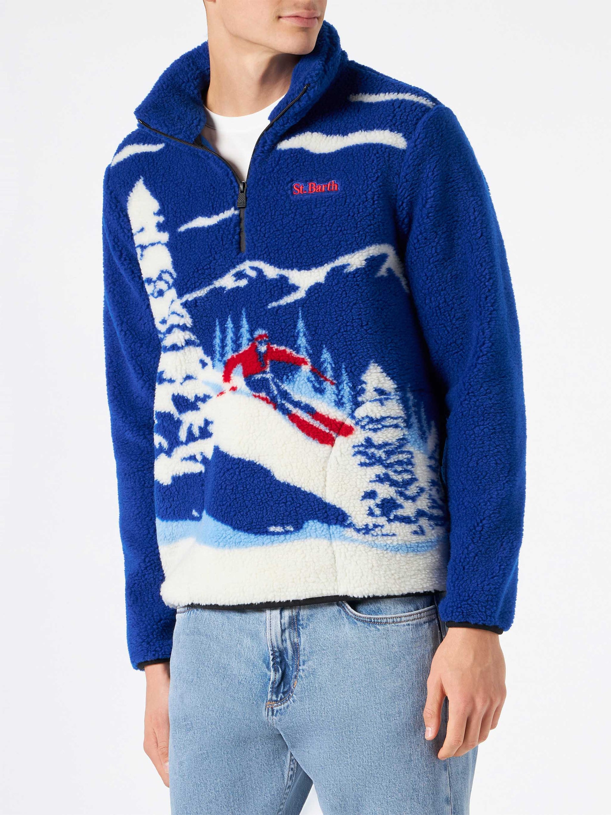 Sherpa-Fleecejacke für Herren mit Bergmuster