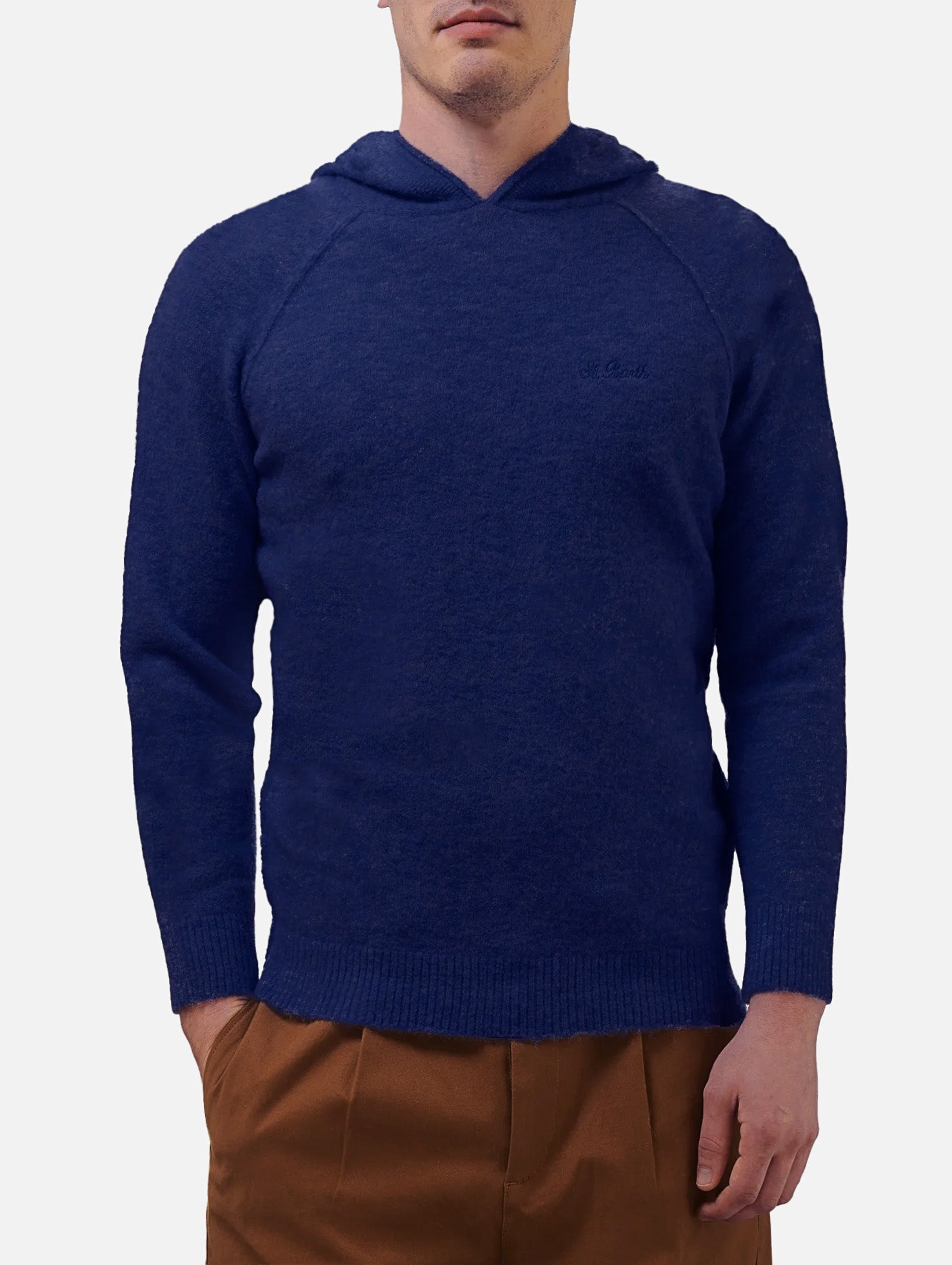 Marineblauer Kapuzenpullover aus Stretch Alpaka für Herren Piccadilly