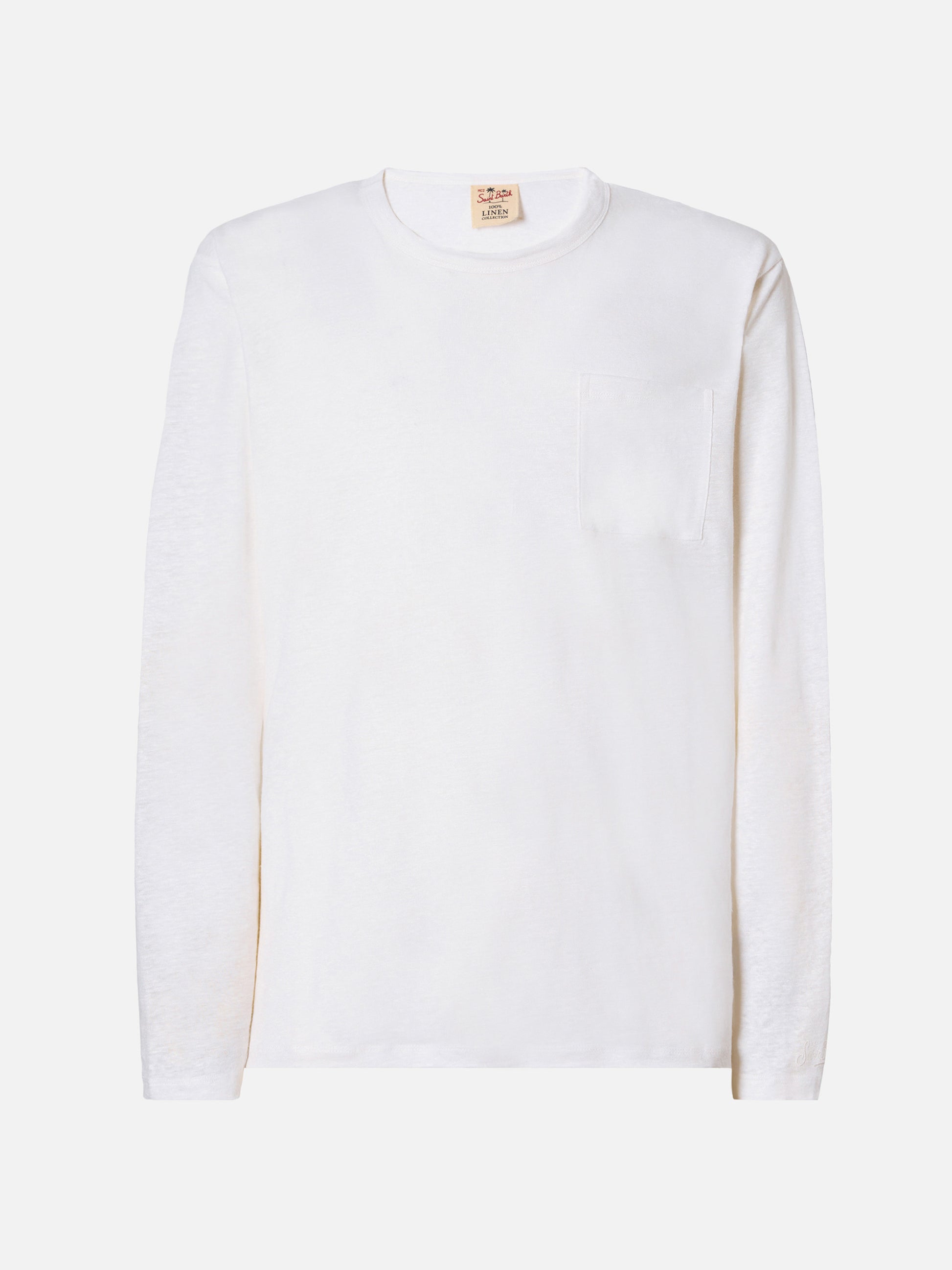 Weißes Herren-T-Shirt aus Leinenjersey mit Ecstasea-Motiv und Tasche