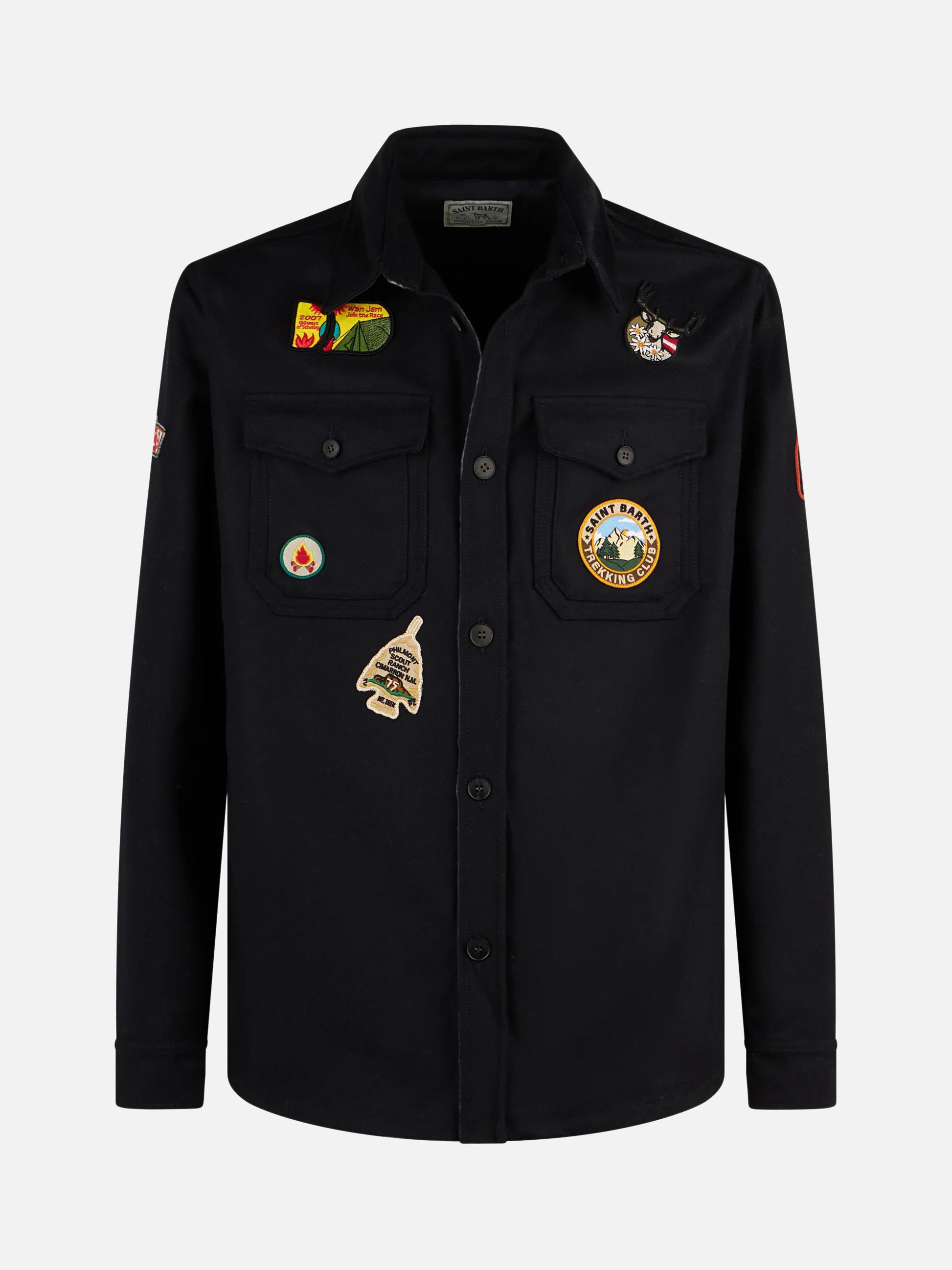 Wolliges blaues Herren-Überhemd mit Taschen und Aufnähern