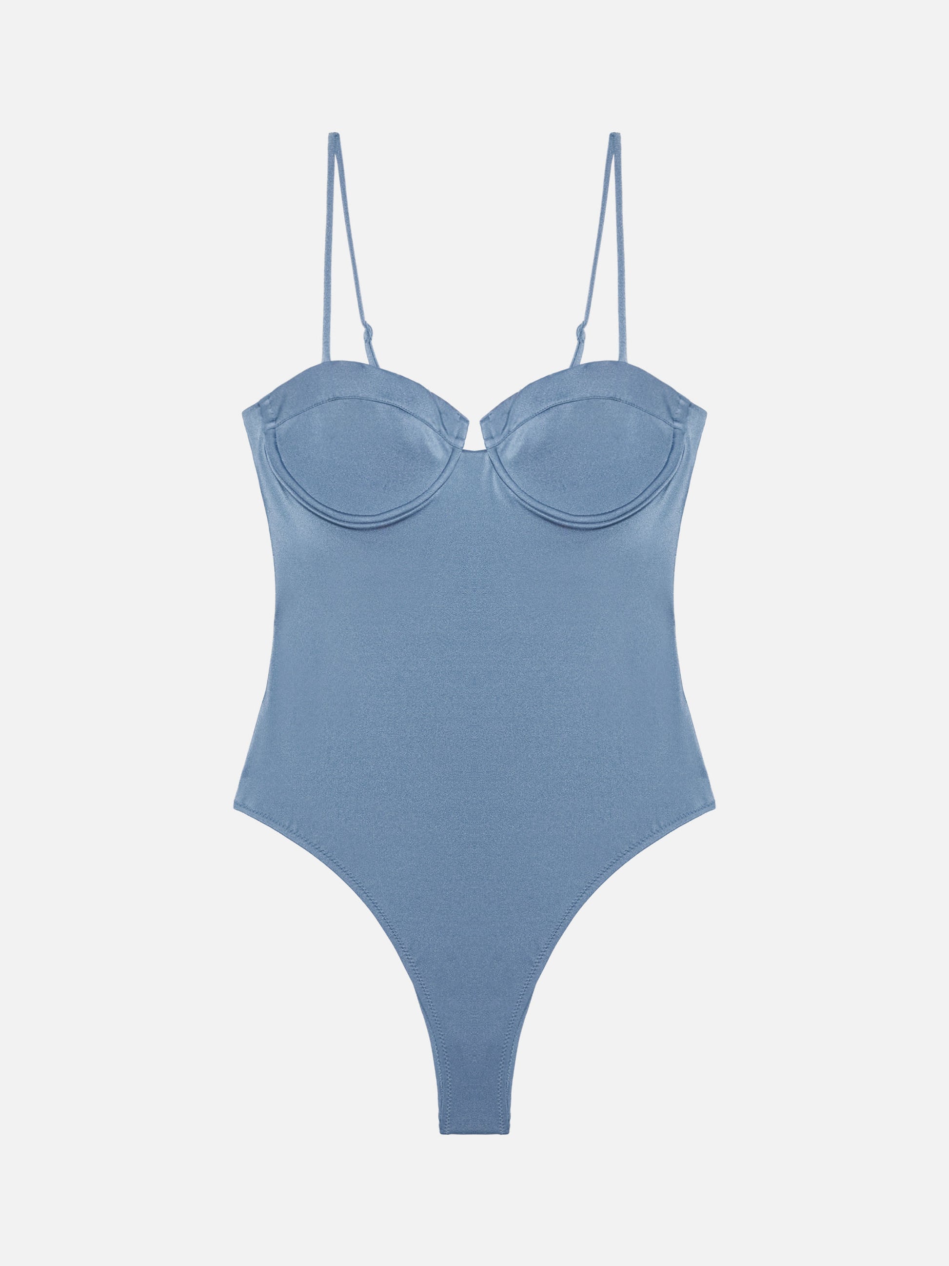 Medea schimmernder Avioblauer Bügel-Badeanzug