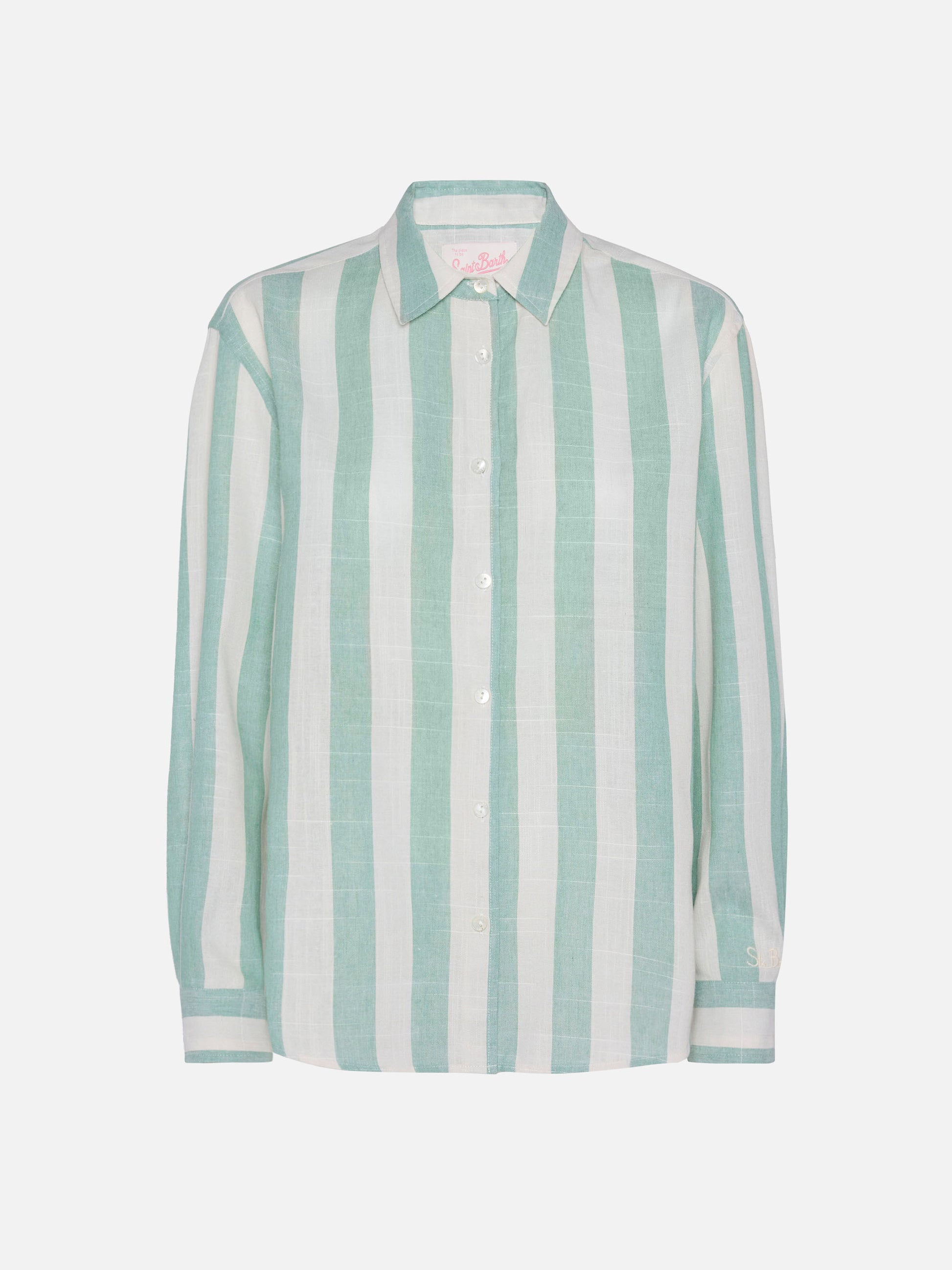 Meredith classic shirt with sage green striped print
