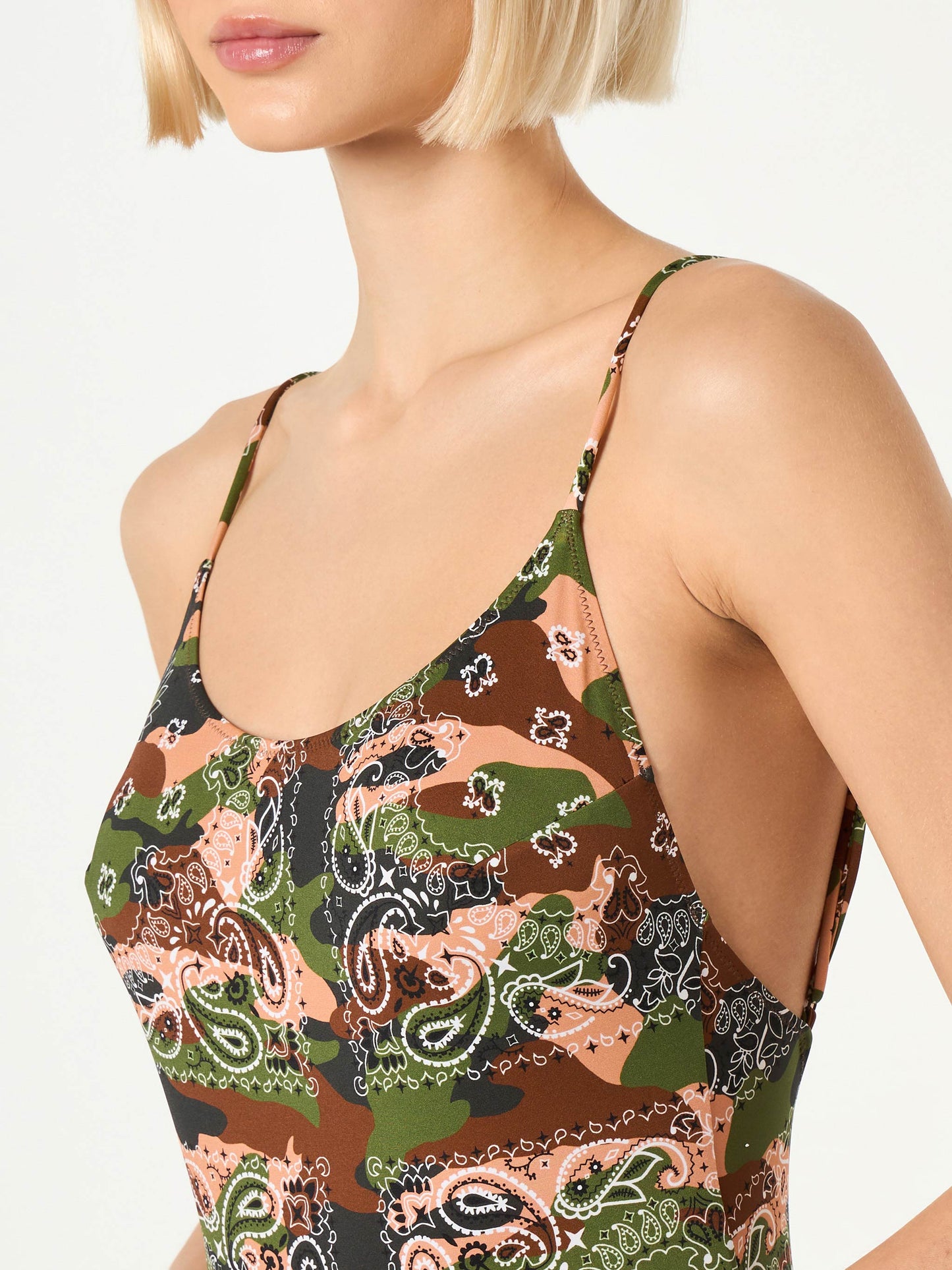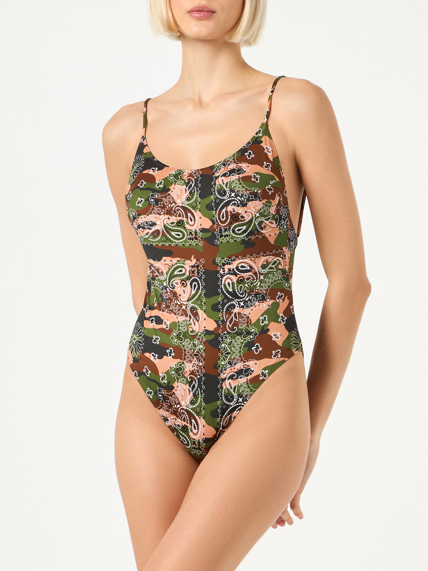 Einteiliger Badeanzug mit nachgeahmtem Bandana-Print
