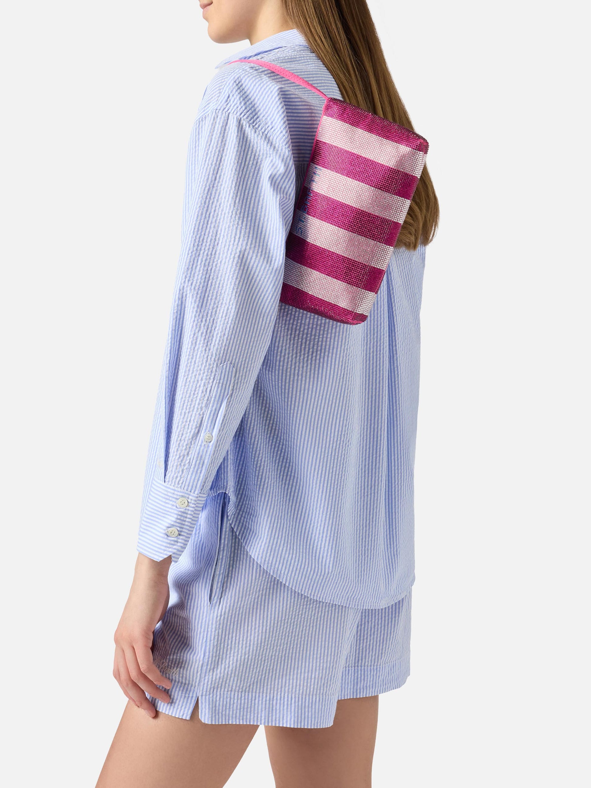 Mini-Tasche Strassy mit rosa und silbernen Strasssteinen