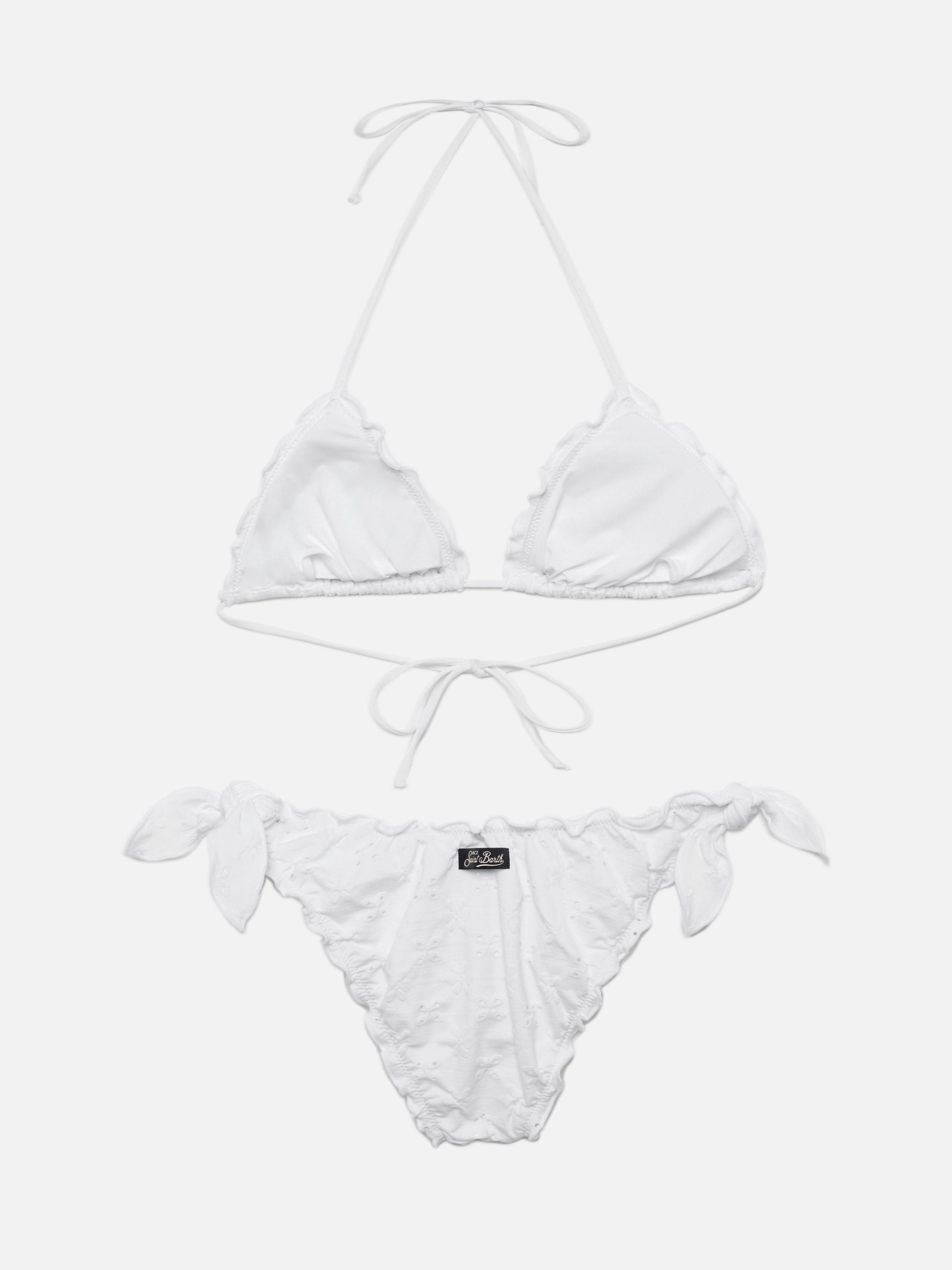 Klassischer Triangel-Bikini Sagittarius Moon aus weißer Sangallo-Spitze