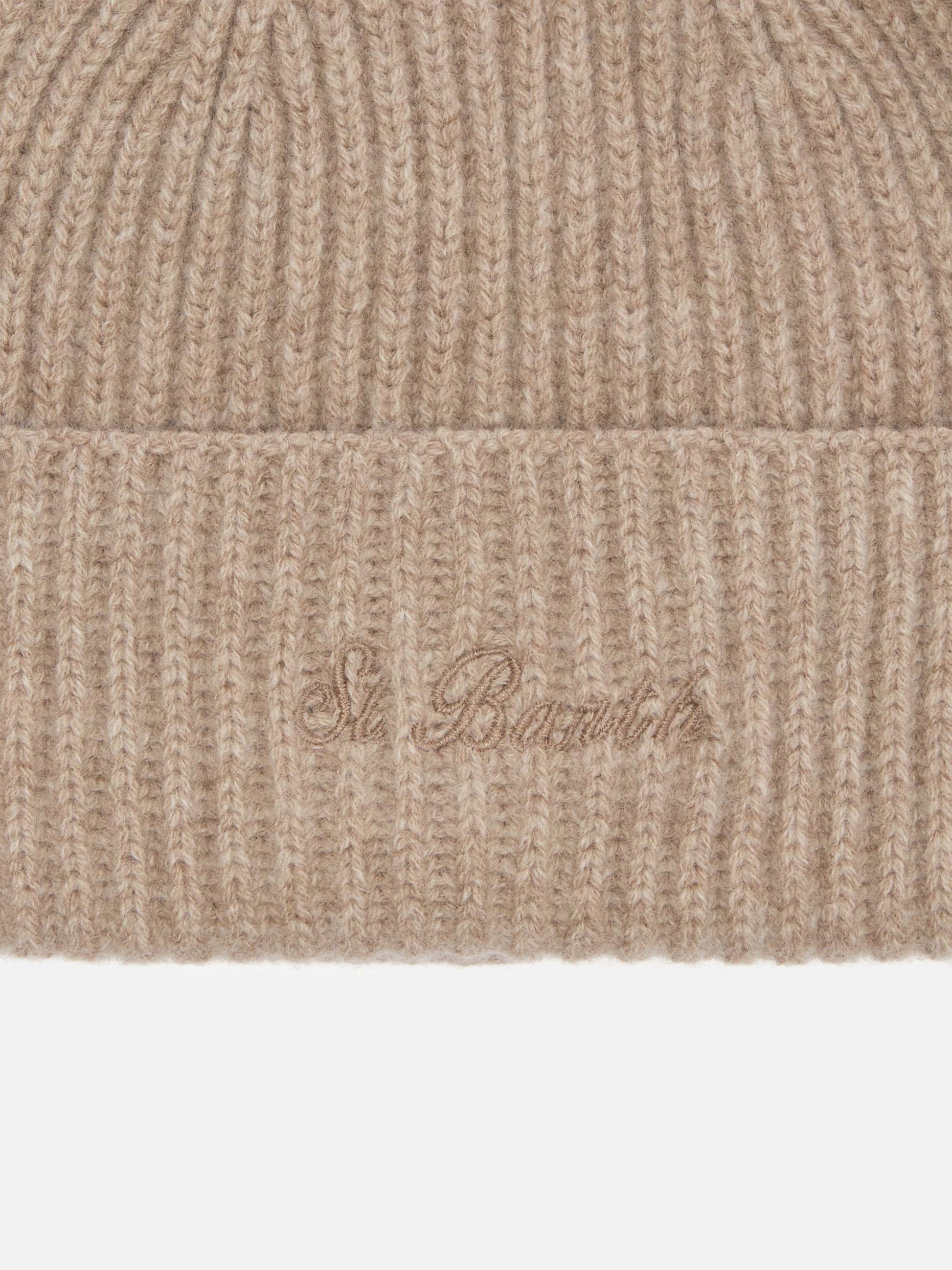 Moss Beanie in 100% WOOL khaki with St. Barth embroidery