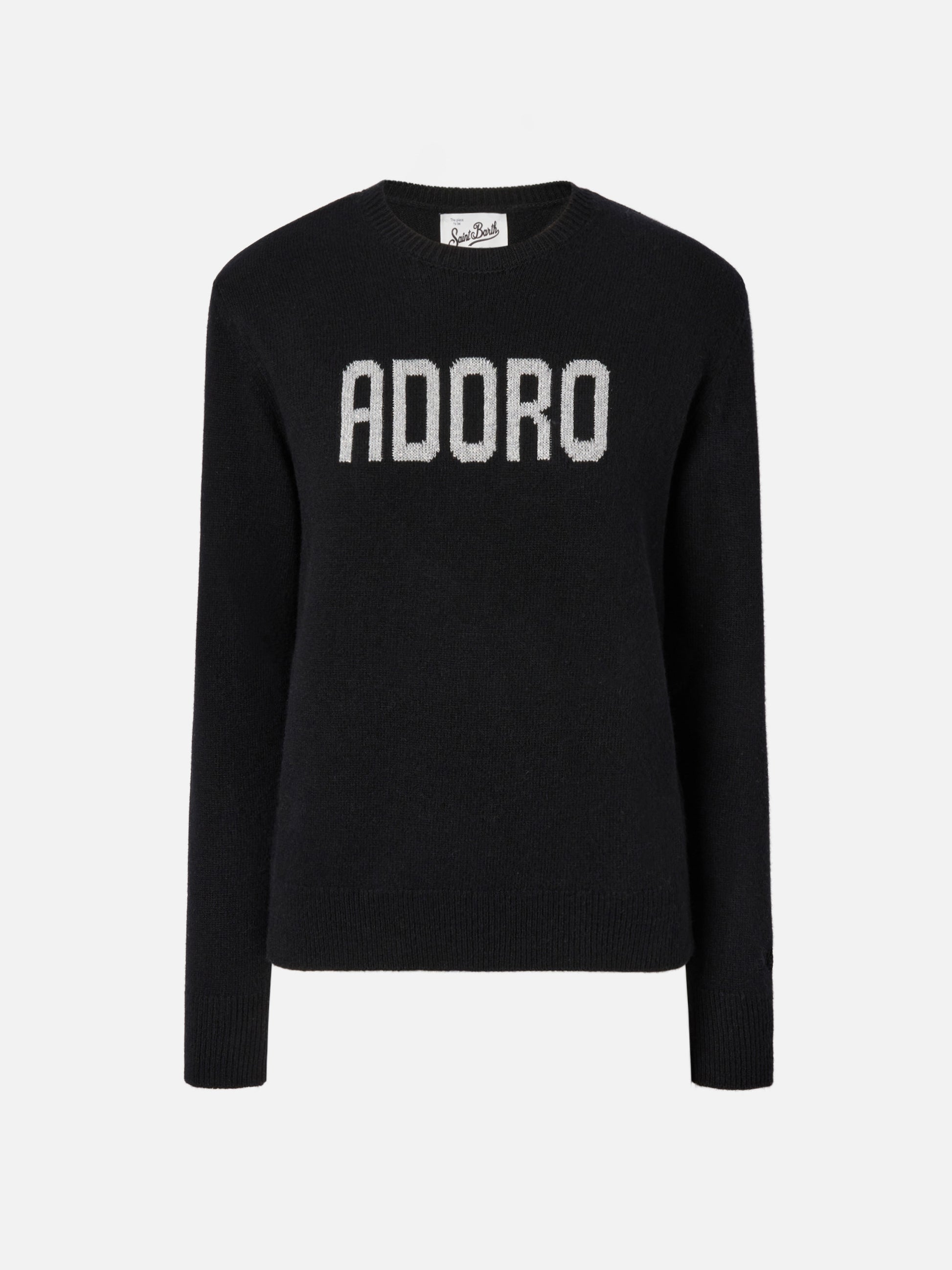New Queen cashmere-blend sweater in black with Adoro jacquard