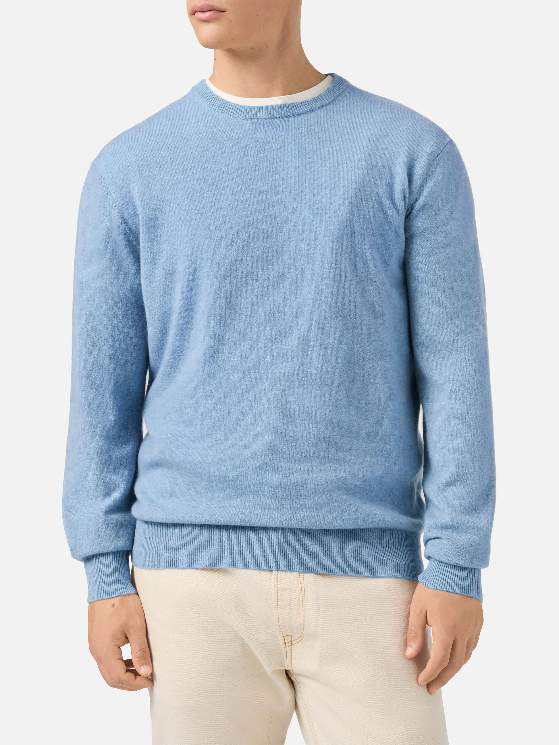 Regent Rundhalspullover aus 100 % hellblauem Kaschmir