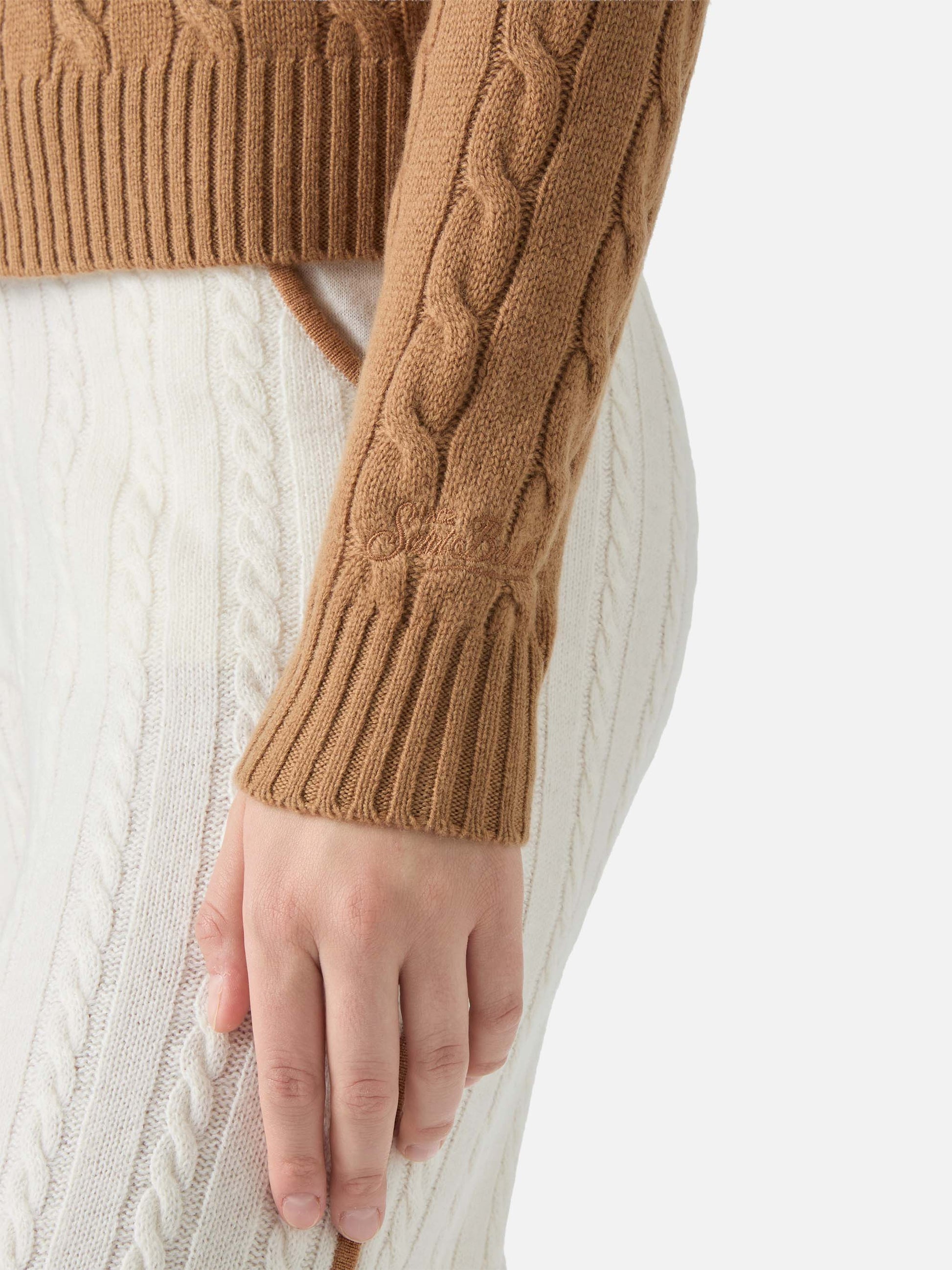Savoy Polo-Pullover aus Merinowolle mit weichem Zopfmuster in Kamel