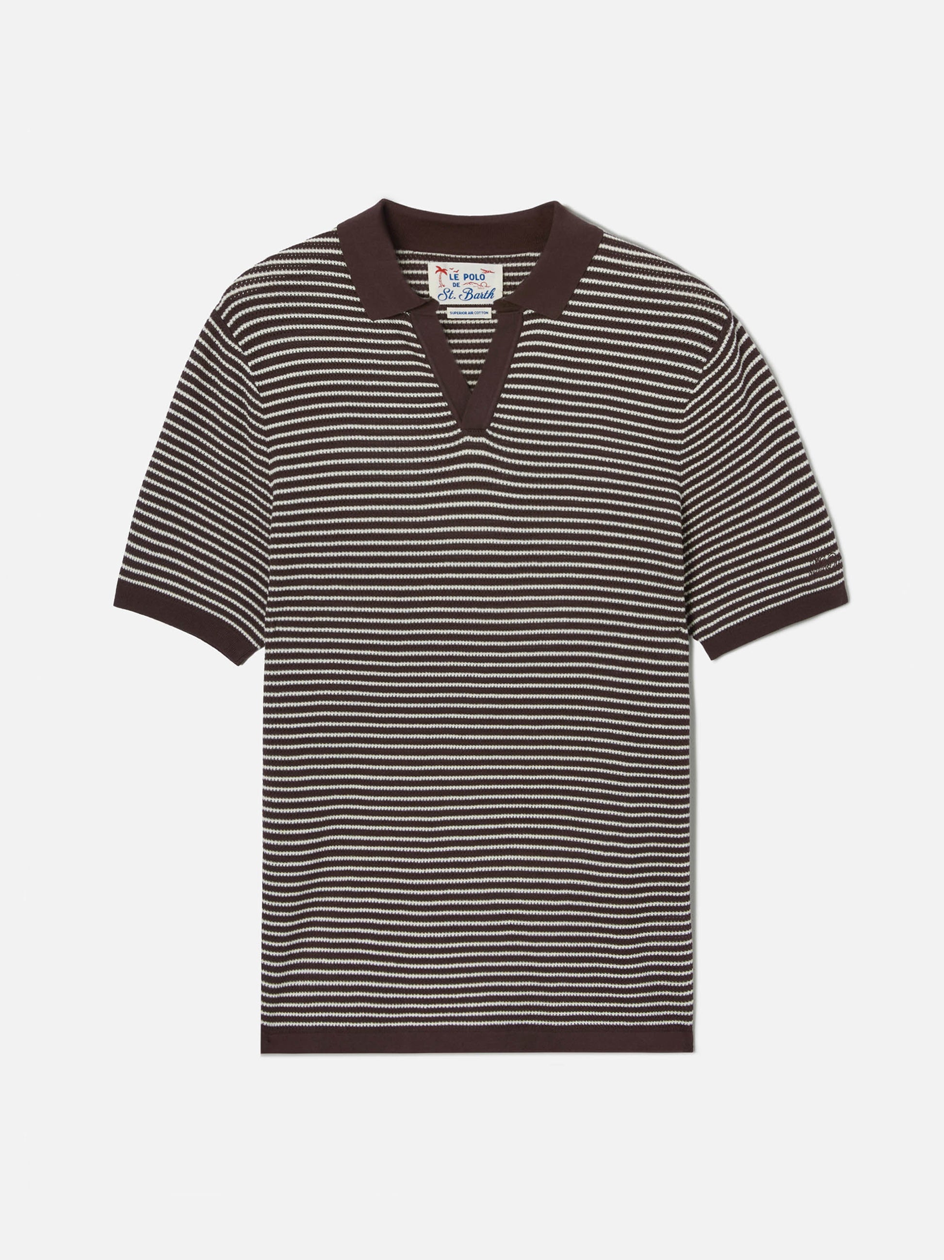 Sloan striped polo in premium high-twist cotton with brown stripes