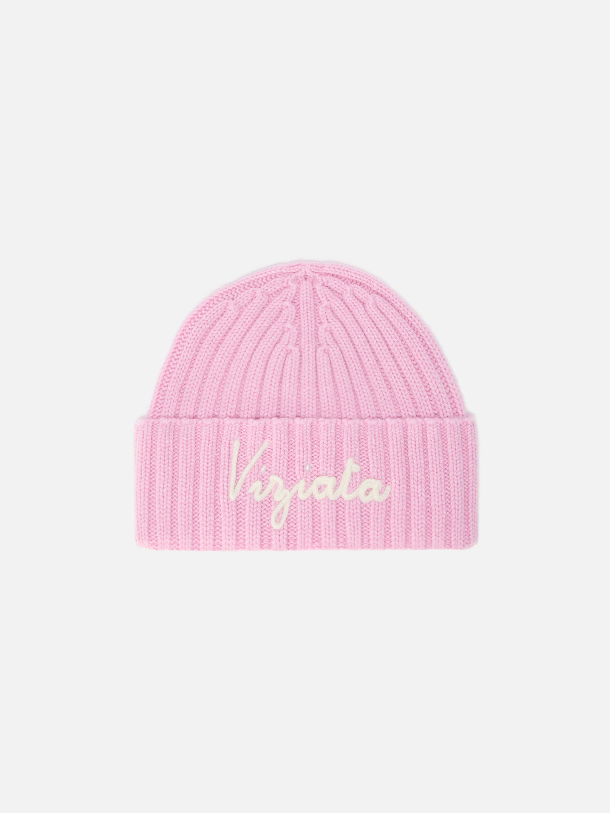 Wengen-Mütze aus Kaschmirmischung in Rosa mit Viziata-Stickerei