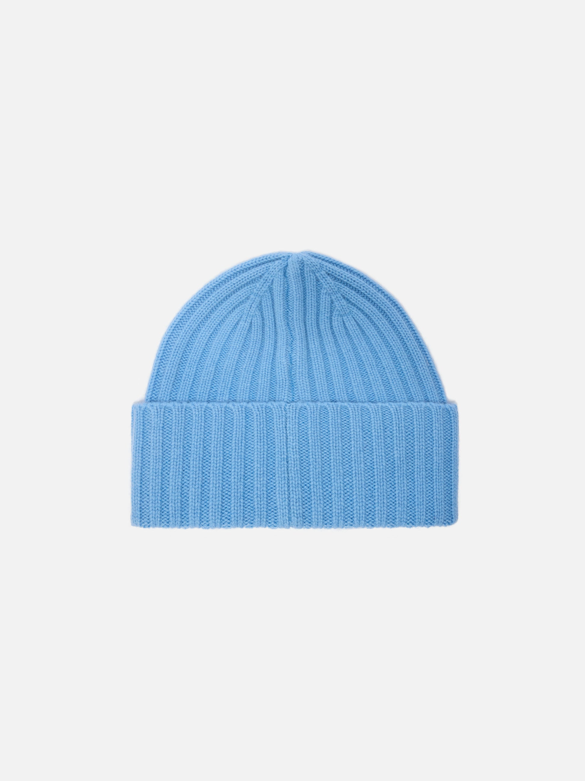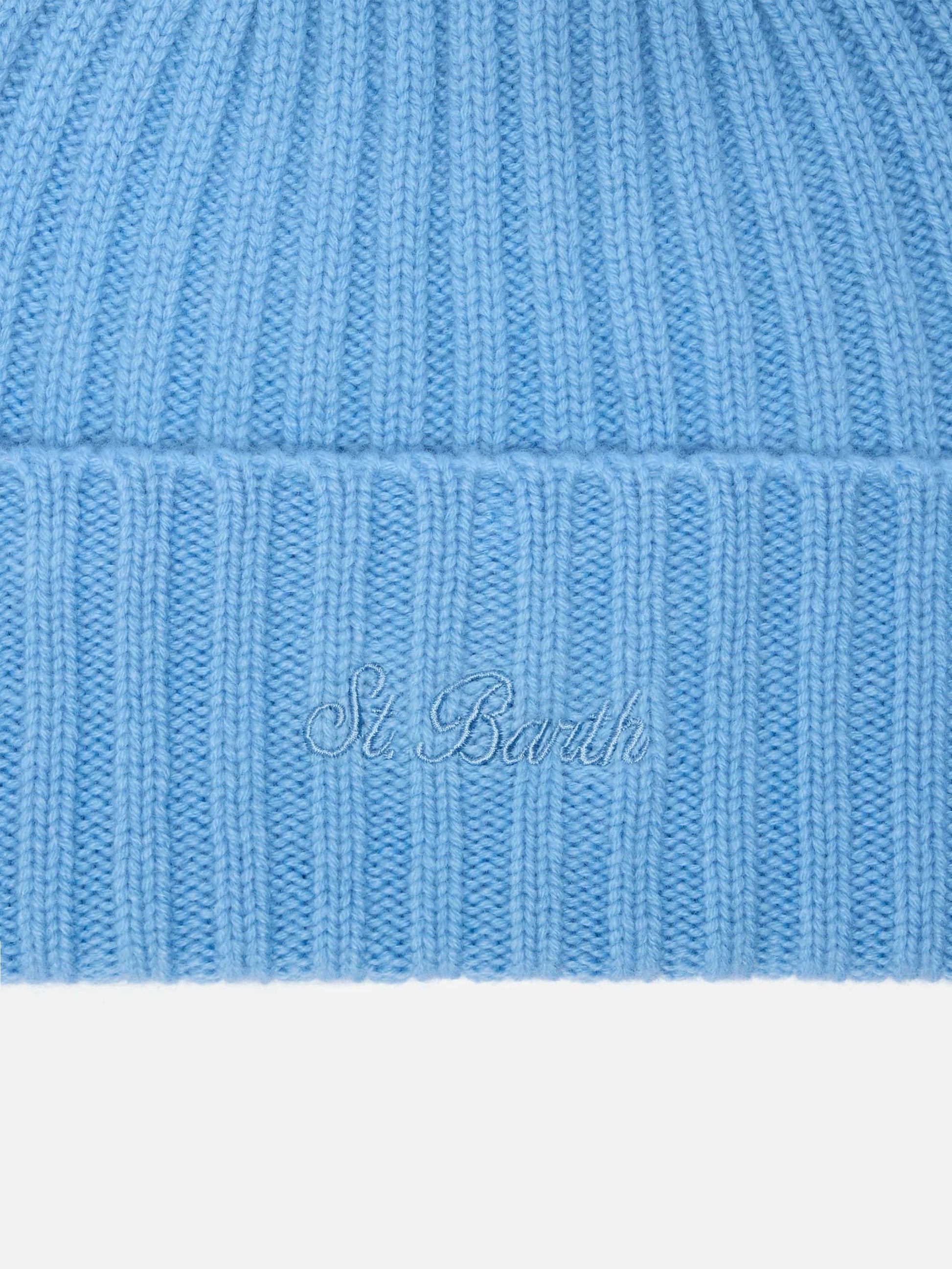 Wengen beanie in cashmere in light blue with St. Barth embroidery on the turn-up