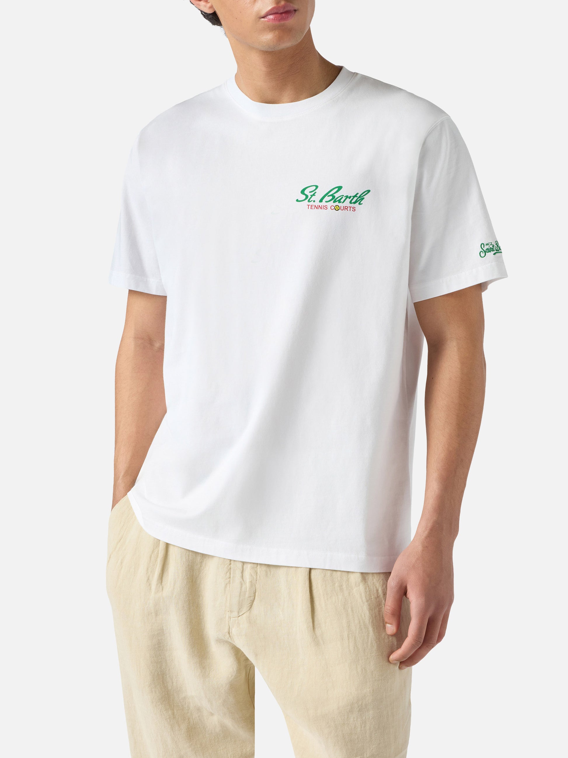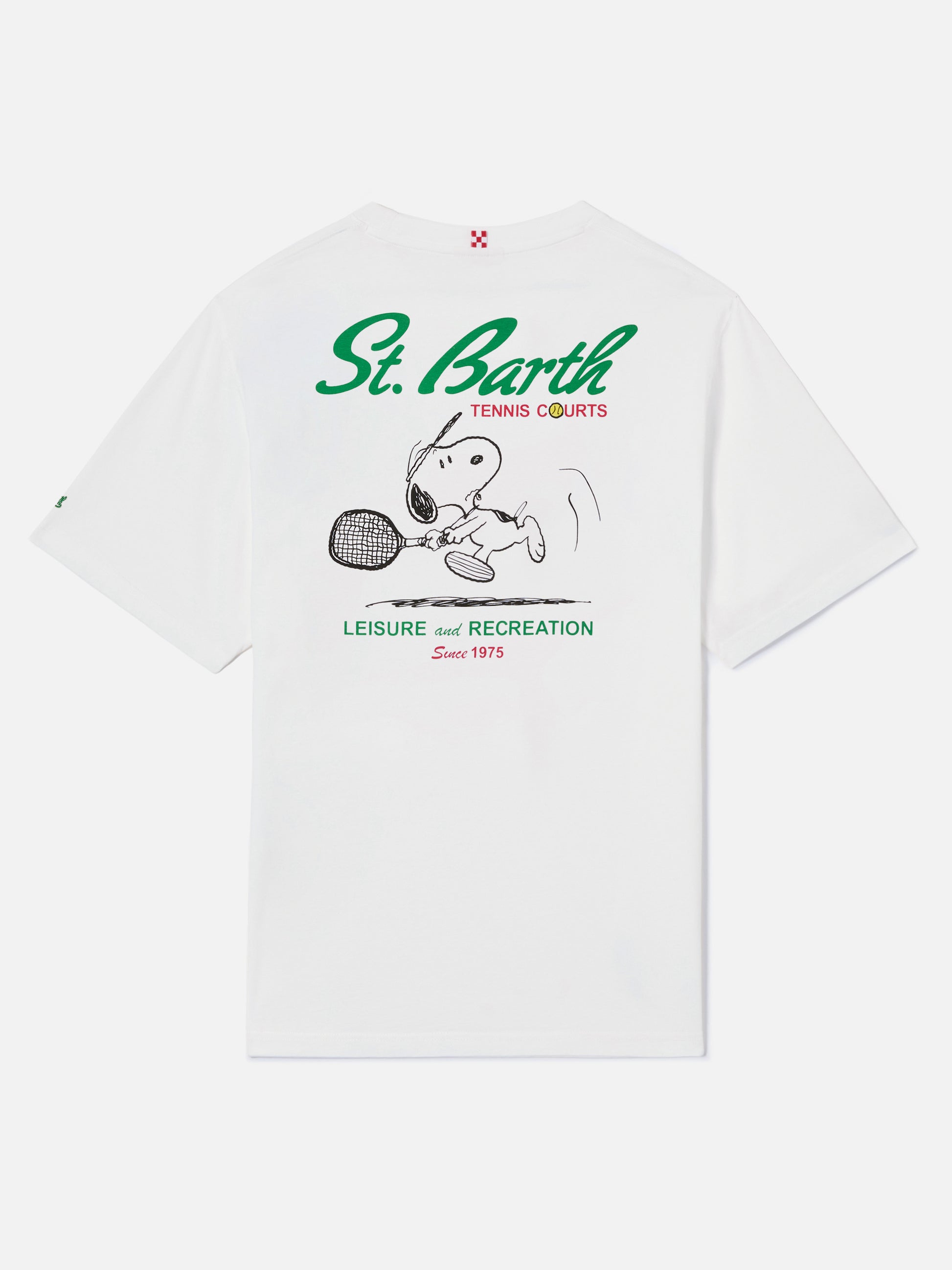 White Portland t-shirt with Snoopy Tennis Court illustration | Special Edition