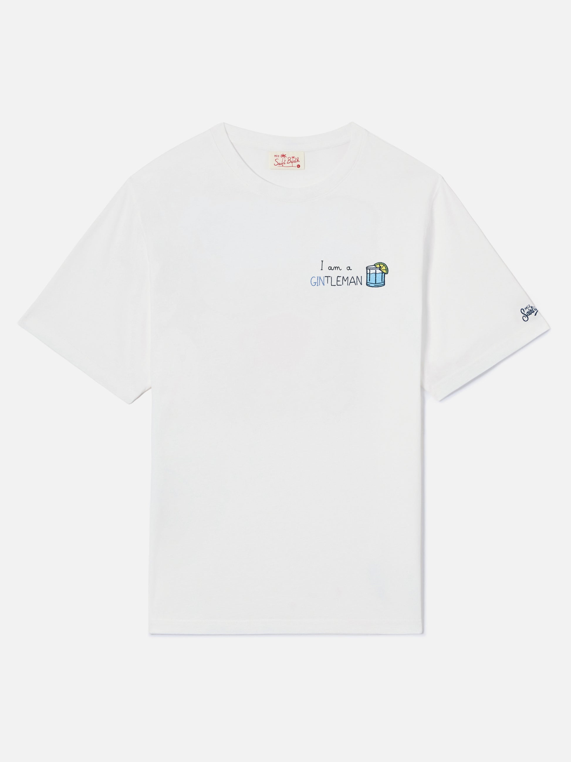 White Portofino T-shirt with I Am A Gintleman embroidery