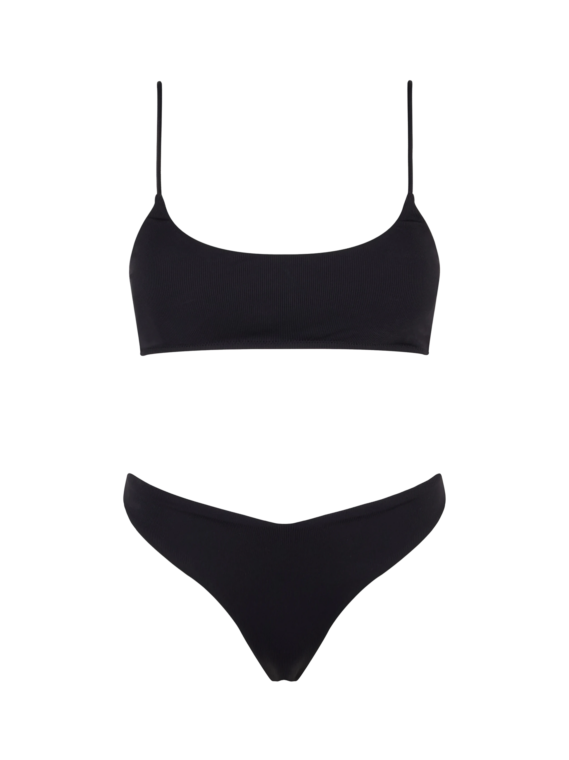 Schwarzer gerippter Bralette-Bikini für Damen Judy Naomi