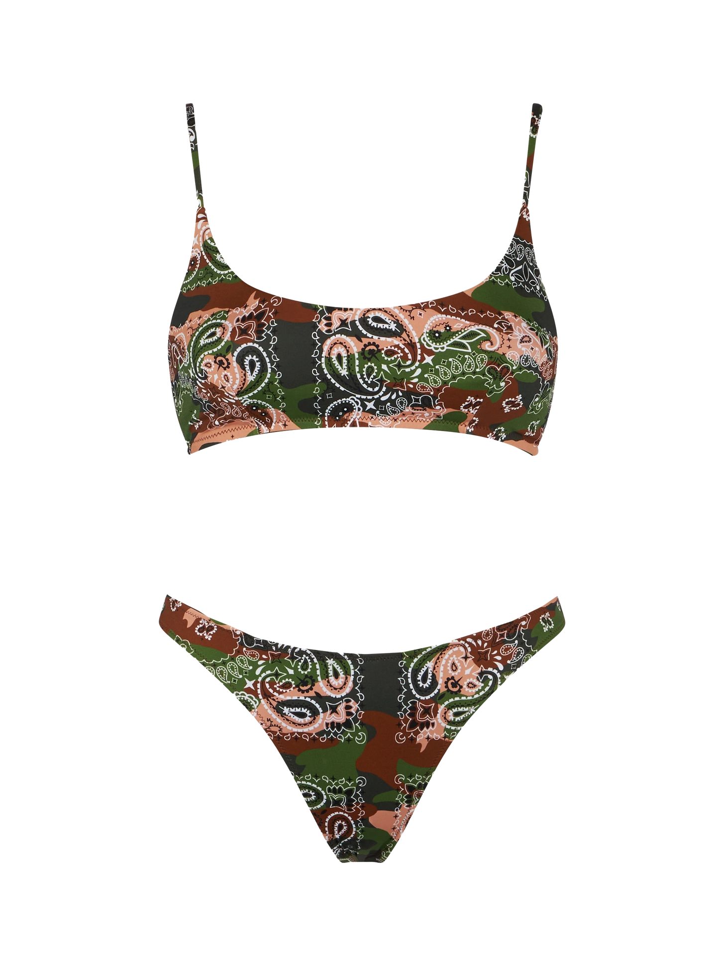 Damen-Bralette-Bikini mit nachgeahmtem Bandana-Print