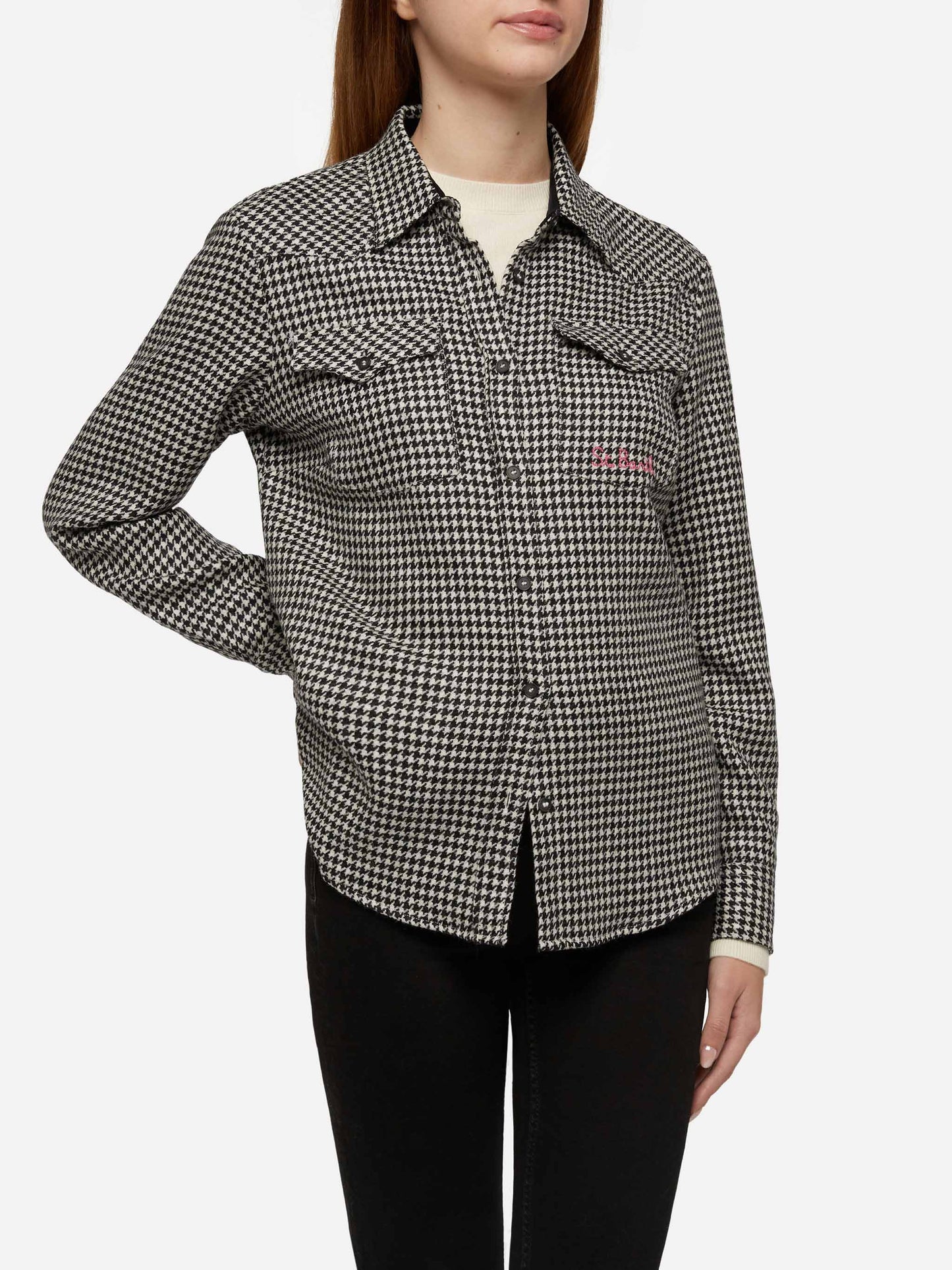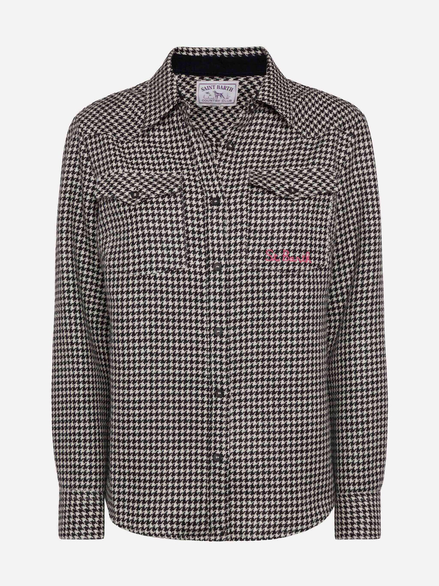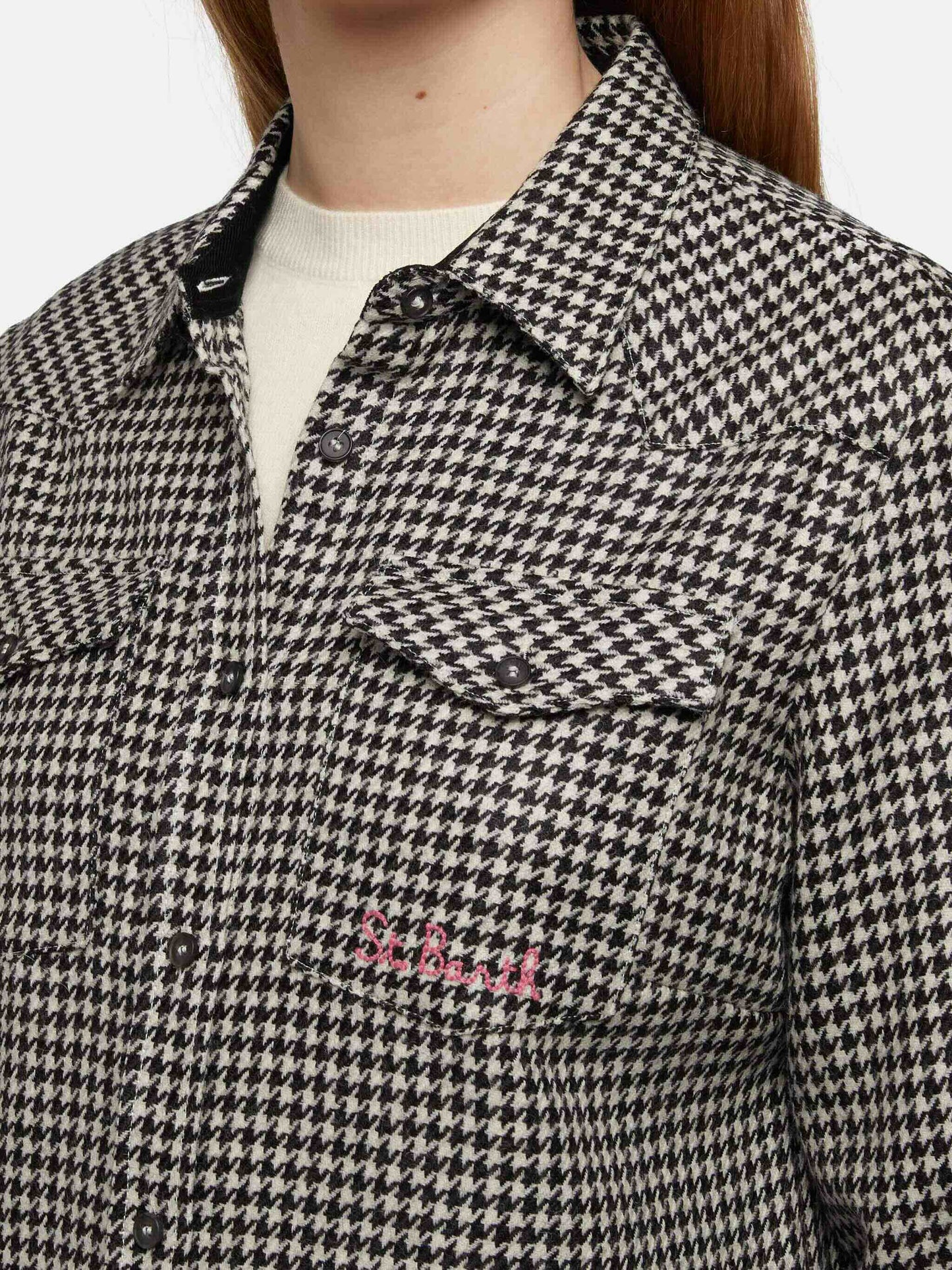 Wollhemd Hirsch mit Pied de Poul-Print
