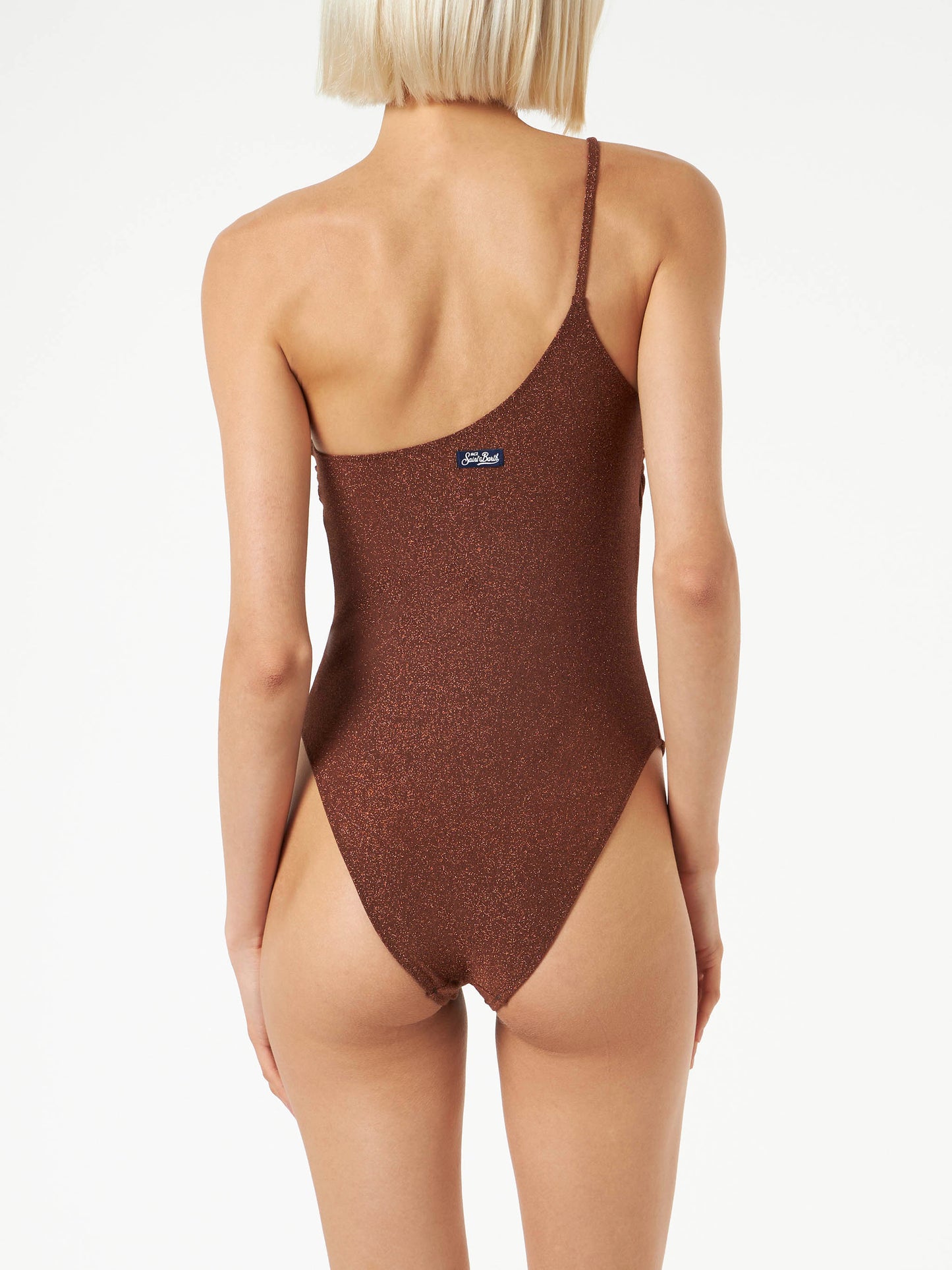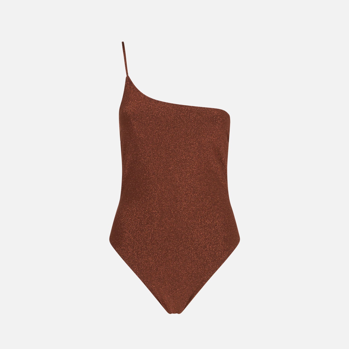 Einteiliger Damen-Badeanzug aus braunem Lurex mit einer Schulter