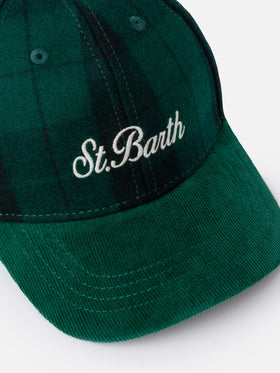 Baseball-Cap aus Wolltartan mit Cord-Schirm und gesticktem Logo