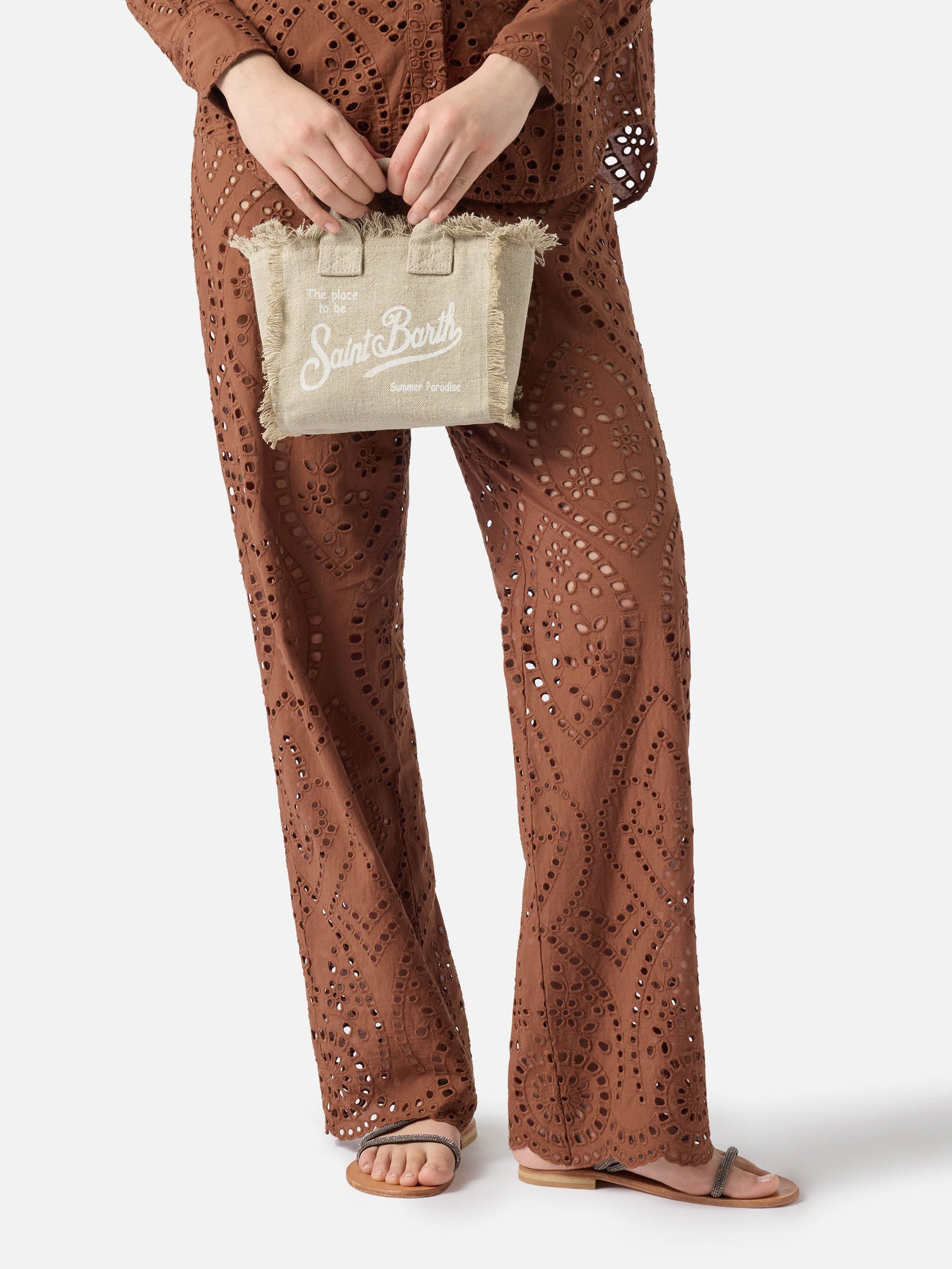 Borsa Vanity mini in lino beige tinta unita con tracolla removibile