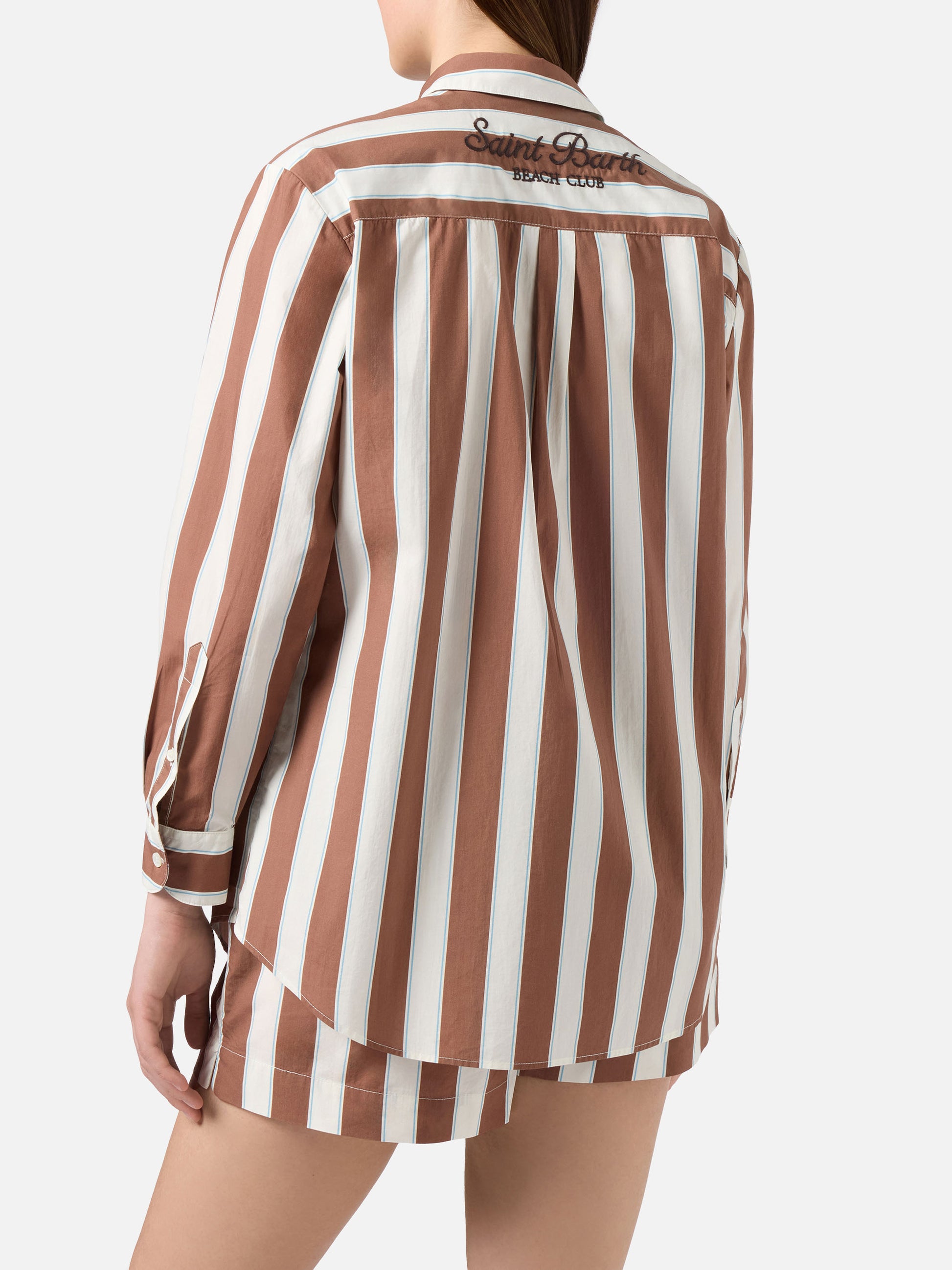 Camicia Brigitte in cotone a righe marroni con ricamo Sport Club
