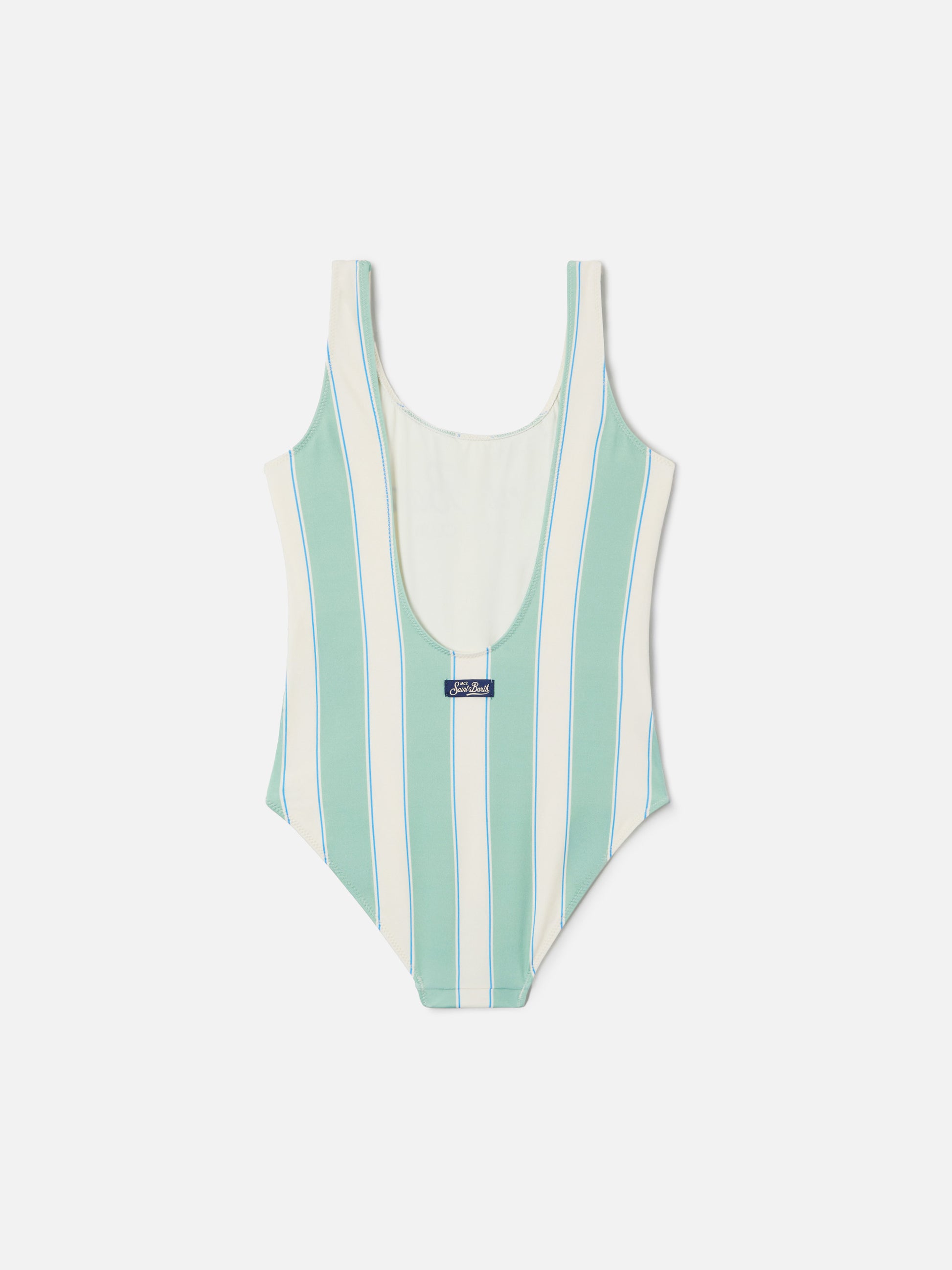Costume intero Cara a righe verdi e bianche con stampa Beach Club