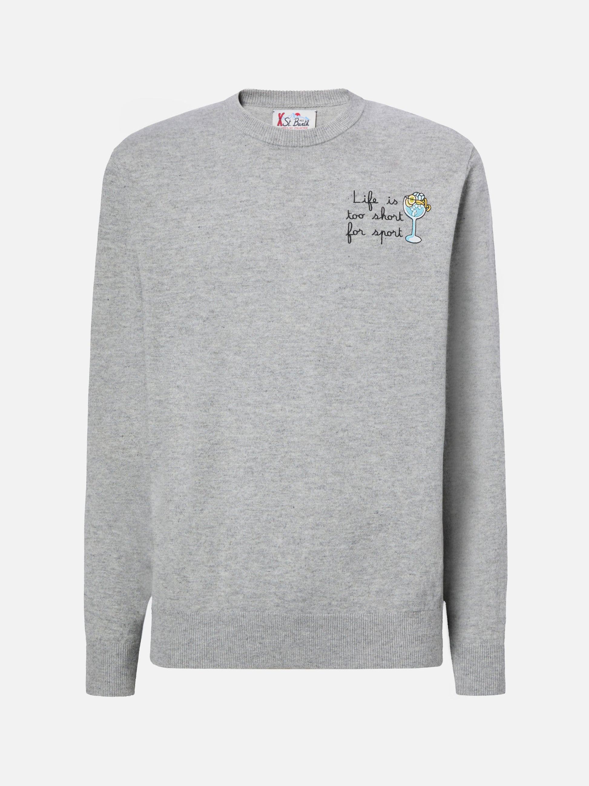 Maglione a girocollo Heron Light con ricamo Life is too short for sport
