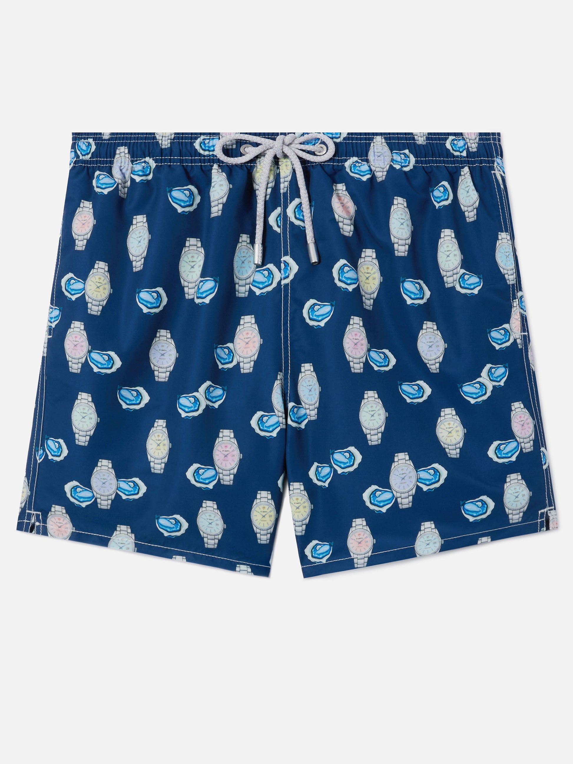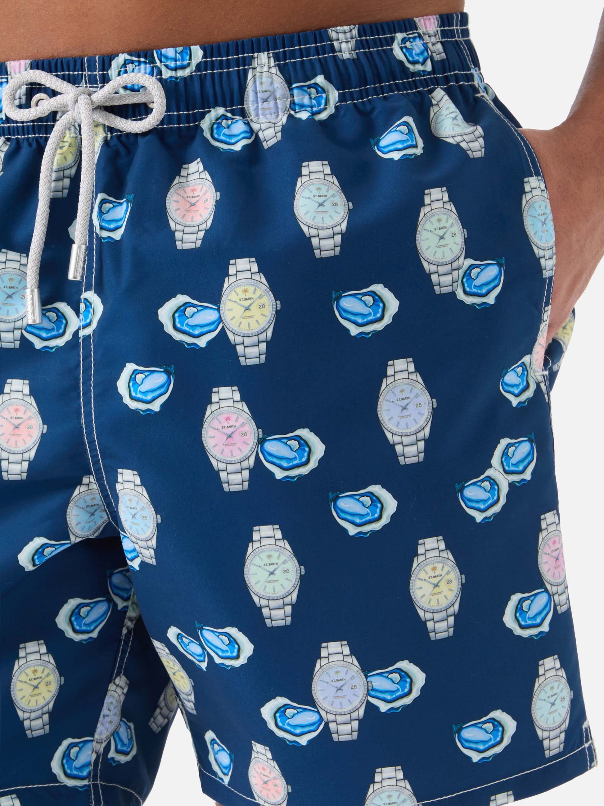 Costume mare Gustavia con stampa ostriche e orologi