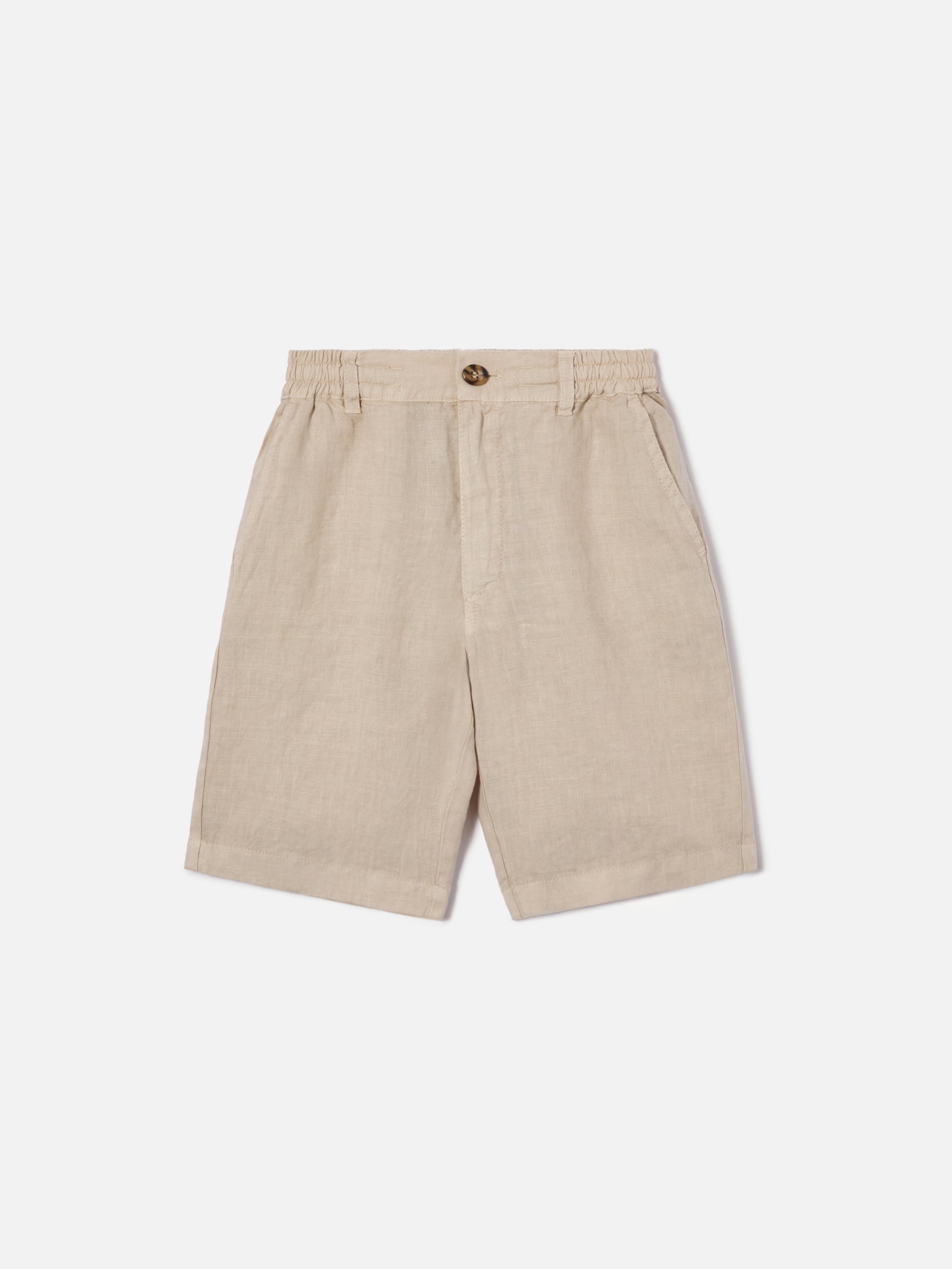 Gli shorts Ischia Jr da bambino sono realizzati in puro lino, un tessuto leggero e traspirante. Il colore grigio chiaro tinta unita definisce un’estetica essenziale e versatile. Il modello presenta chiusura con zip e bottone logato sul davanti, vita elasticizzata con coulisse interna regolabile e tasche laterali sul davanti. Sul retro sono presenti tasche a filetto con bottone logato, completate da ricamo St. Barth tono su tono sulla tasca. La costruzione con linea pulita garantisce una vestibilità regolare.