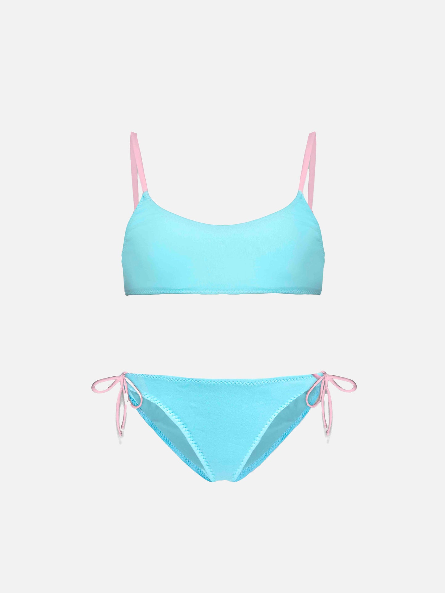 Bikini da bambina a bralette con scritta ricamata Lost in St. Barth