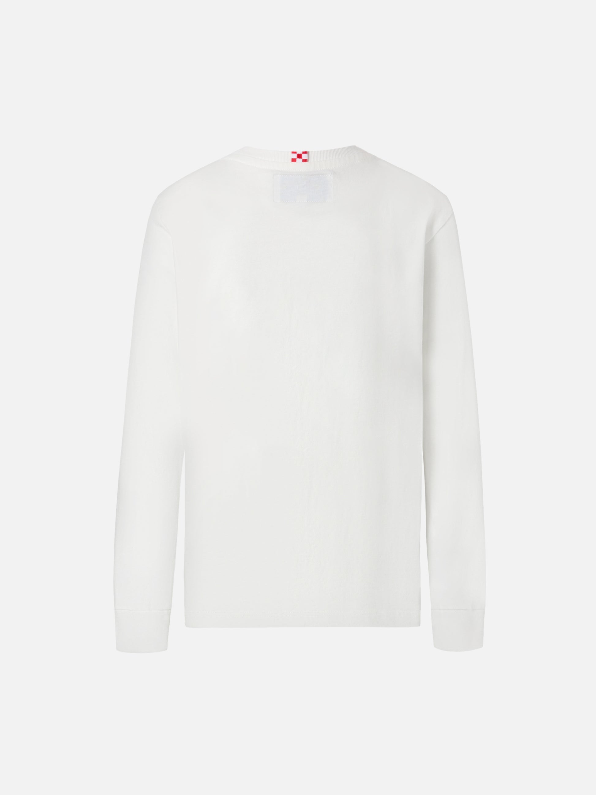 T-shirt Luton in cotone invernale bianco a maniche lunghe con ricamo Cortina 1983 e stampa Cortina